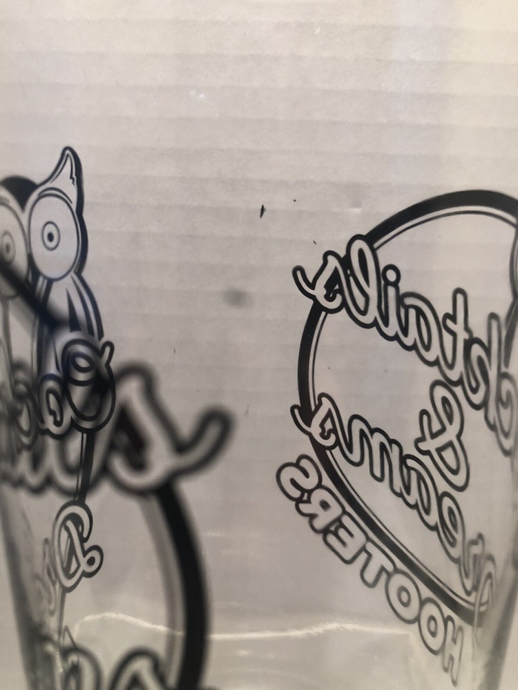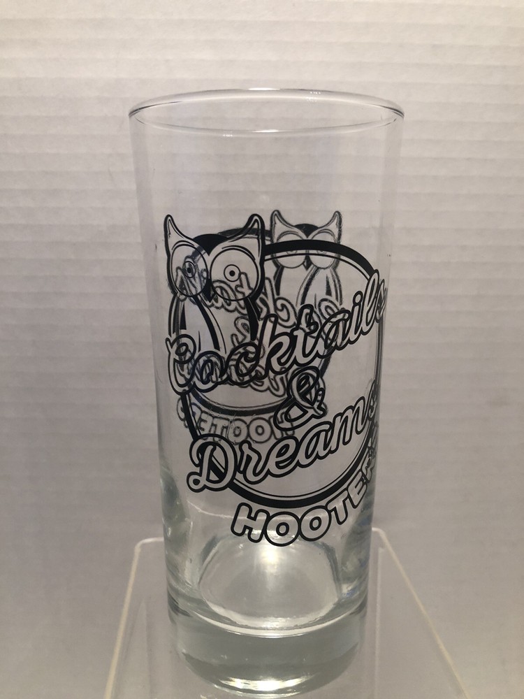 Hooters Cocktails and Dreams Glass Tumbler Cocktails & Dreams Tumbler is approx 6.25" Tall Approx 2.75 Top Diameter Weighs approx 11 ounces. Glass appears unused. Two black spots in almost identical areas on both sides. May be screen-print ink. See photo. Looks like it rolled off the line yesterday. No Returns. Comes from a smoke free home. What you see pictured is the item you’ll receive. Shipping is calculated based on your location by The USPS. Check out my other auctions! Thanks and Cheers.