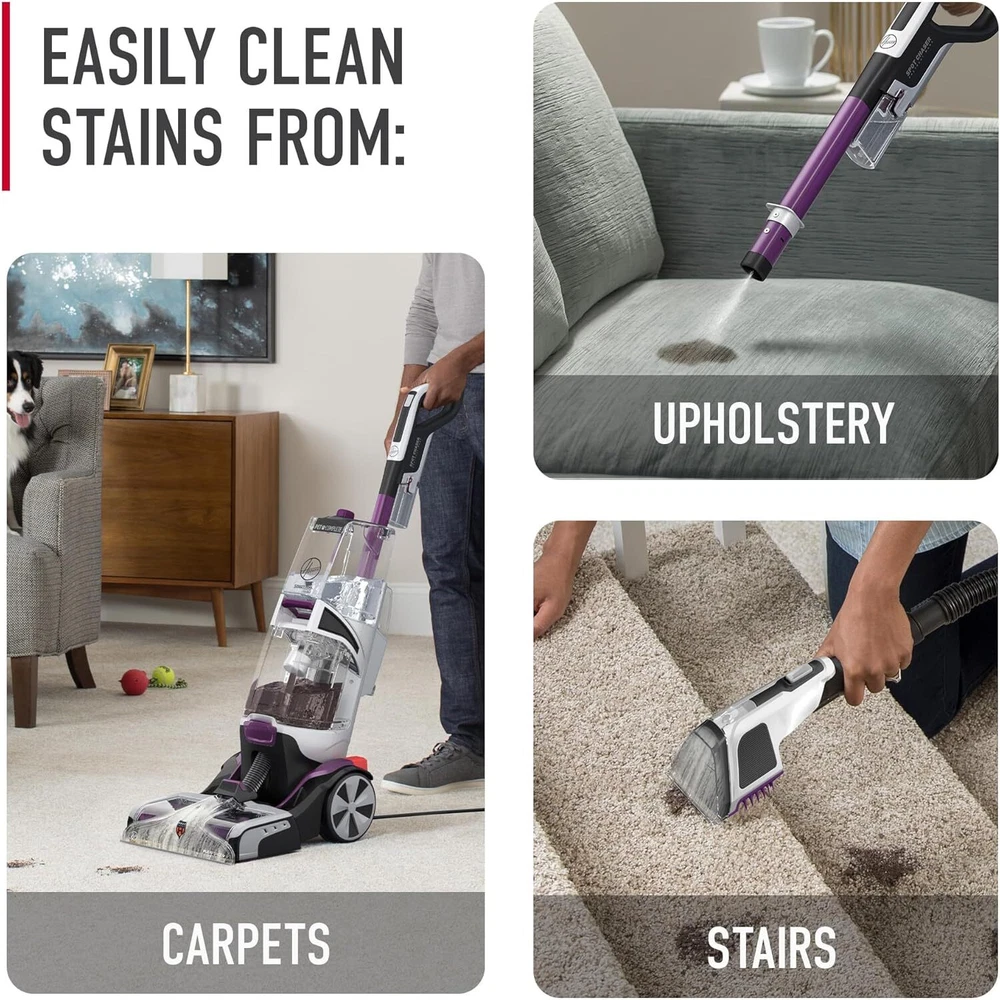 Color: Purple Type: Upright Brand: Hoover Features: Odor Eliminating, Quick Dry, Spot Cleaner Cord Type: Corded Model: Hoover SmartWash MPN: FH53000PC Included Accessories: Antimicrobial Pet Tool