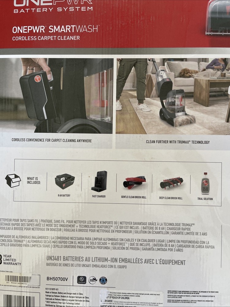 1. This Hoover carpet cleaner is a game-changer! The SmartWash system makes deep cleaning effortless, and the included battery and charger add so much convenience. It arrived fast, brand new in the box, and works like a dream—powerful suction, easy to maneuver, and leaves carpets looking fresh. Perfect for pet owners or high-traffic areas. Highly recommend!