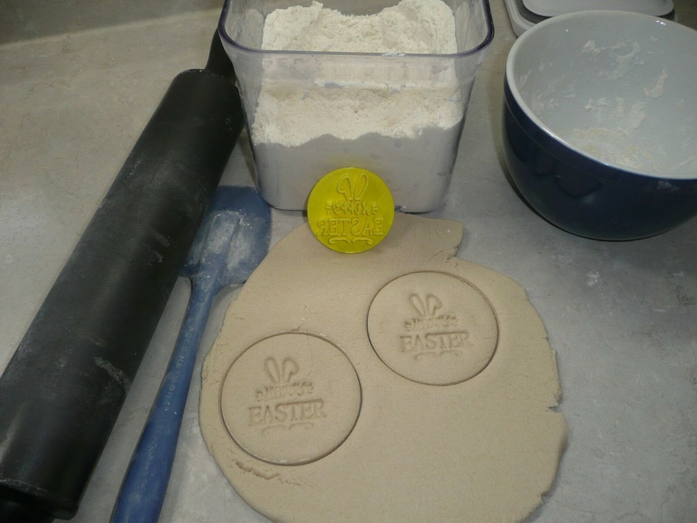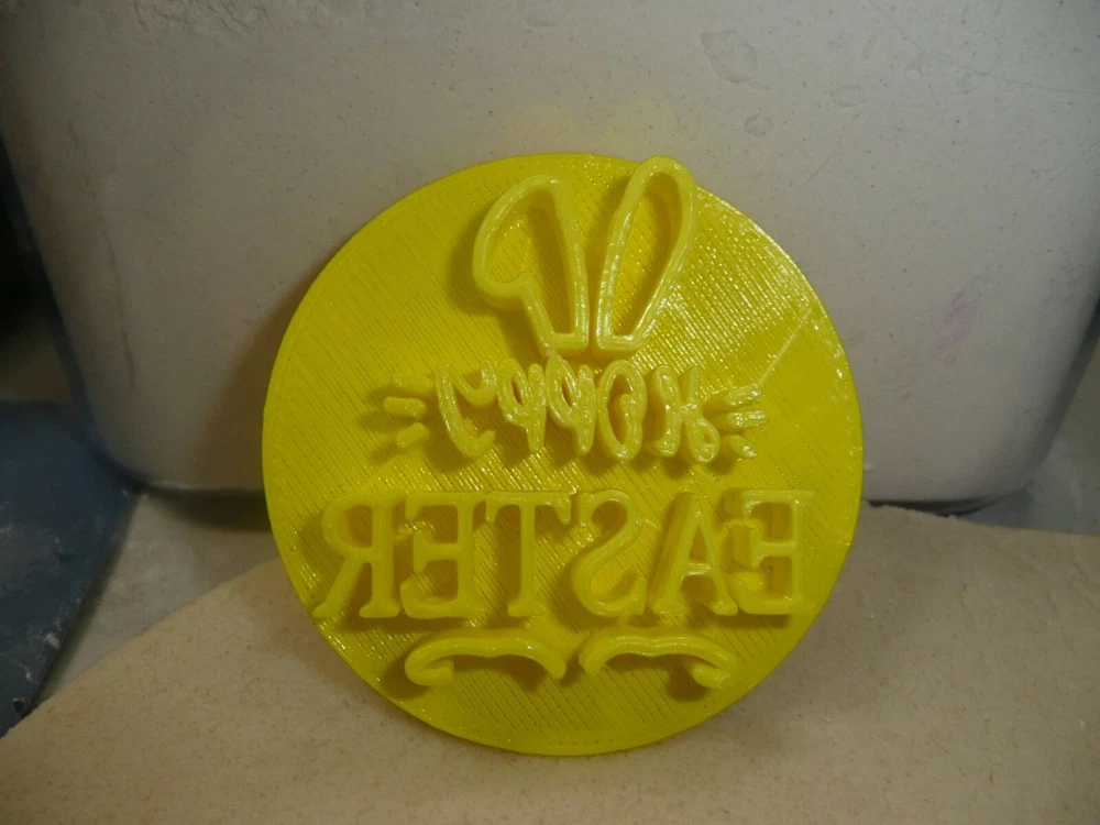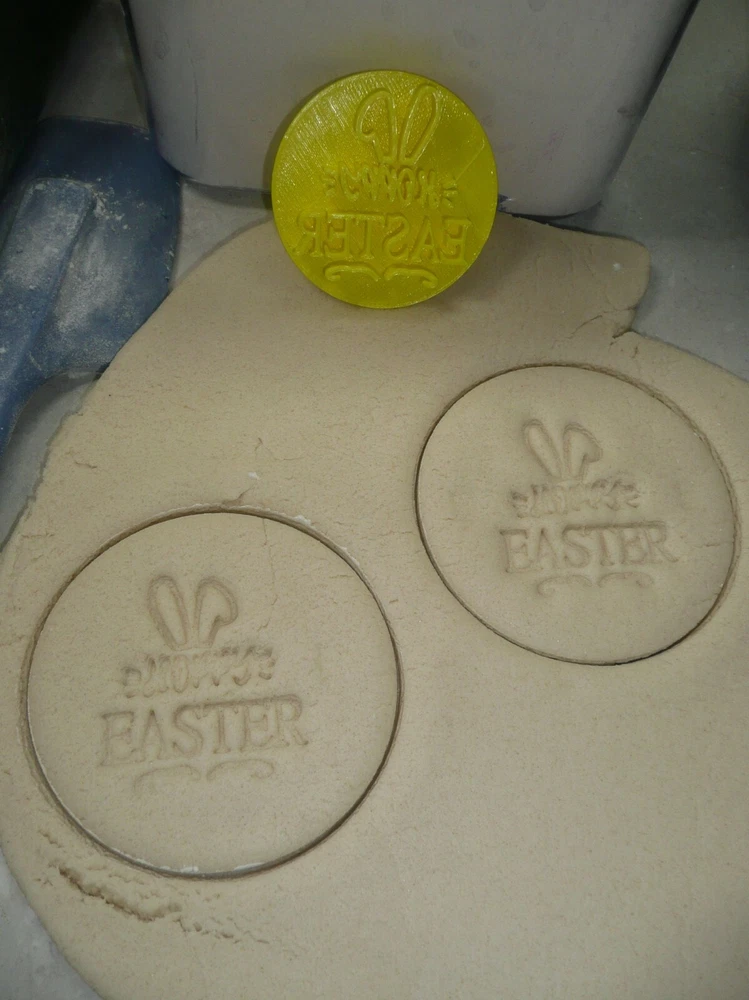 HOPPY EASTER WORDS WITH BUNNY RABBIT EARS COOKIE STAMP EMBOSSER USA PR4194 Size 2 1/4" x 2 1/4" x 3/8" Product Code PR4194 BRAND NEW HAND WASH ONLY