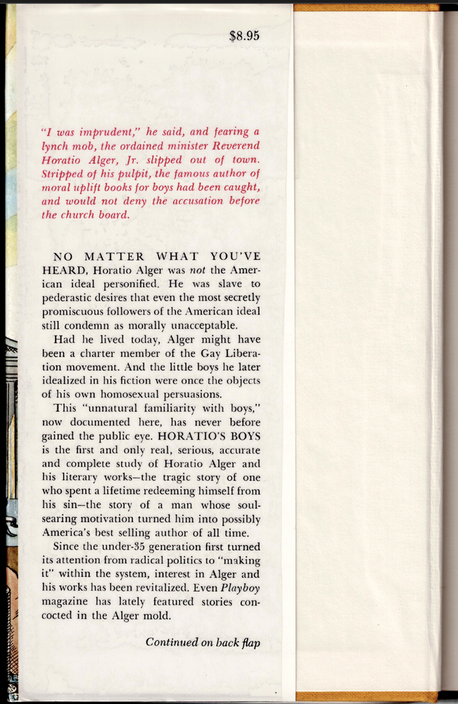 Horatio's Boys - The Life and Works of Horatio Alger Jr. ; by Edwin Hoyt - HC Horatio's Boys - The Life and Works of Horatio Alger Jr. ; by Edwin Hoyt - HC This copy is a first edition in VERY GOOD+ used condition overall. The dust-jacket has light wear, it is now covered in clear, removable, protective film The boards have minimal wear. The binding is in excellent order. The pages are clean, they DO NOT have any names, inscriptions or marking of text. Click here to visit PATRICK ANDREAS QUALITY BOOKS Store Home Page . Listing and template services provided by inkFrog