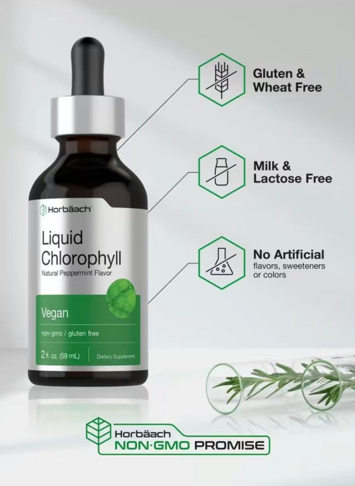 The Horbäach Liquid Chlorophyll Drops are a vegan, non-GMO, and gluten-free supplement that offers a convenient way to add chlorophyll to your diet. This 2 oz bottle of liquid chlorophyll drops is easy to use and swallow, making it a practical choice for those looking to boost their wellness with a natural and pure ingredient. With its high-quality formulation and commitment to clean ingredients, Horbäach Liquid Chlorophyll Drops are a popular choice for those seeking a plant-based supplement.