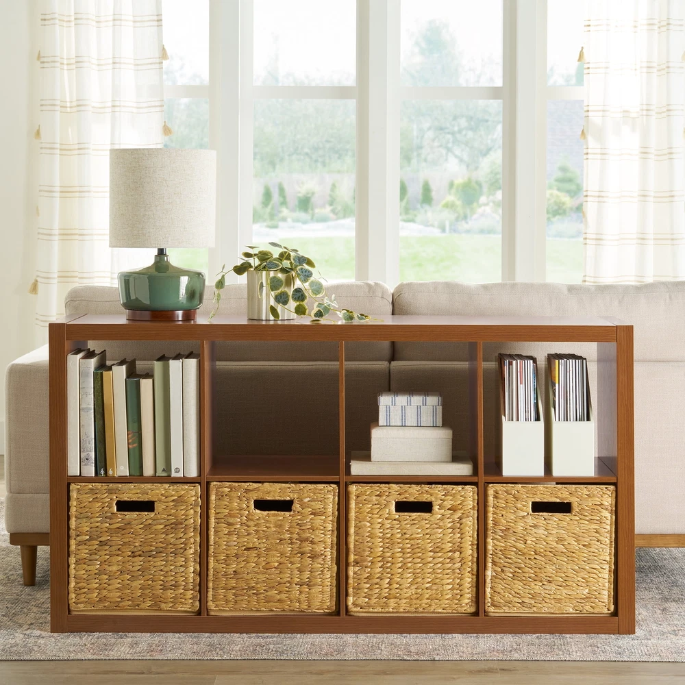 Add function and style to your home with the Better Homes & Gardens 8-Cube Storage Organizer. Available in multiple finishes, including both solid and wood grain options, this cube organizer features eight 13" x 15" x 13" compartments, the perfect size to display books, collectibles, photos, artwork, storage bins and baskets. An open back design makes it easy to manage cords and cables. This sturdy bookcase can stand vertically or horizontally to best suit your needs and space. The top panel supports up to 100 lbs when vertical and 150 lbs when horizontal. Features eight 13" x 15" x 13" compartments Modern, open back design for easy cord management Compatible with Better Homes & Gardens Cube Storage Bins (sold separately) Versatile design allows for vertical or horizontal placement Top panel can support up to 100 lbs when vertical or 150 lbs when horizontal; each cube supports up to 30 lbs Can be combined with other Better Homes & Gardens Cube Storage Organizers (sold separately) Materials: MDF, particle board Attaches to the wall with included safety strap Easy to assemble with included instructions and video assembly guide (hammer, Phillips head screwdriver & flat head screwdriver required) Site to Store Pickup Note: This item is packaged in one large box that may not fit in a standard-sized vehicle. Please make sure you have a large car or truck for store pickup.