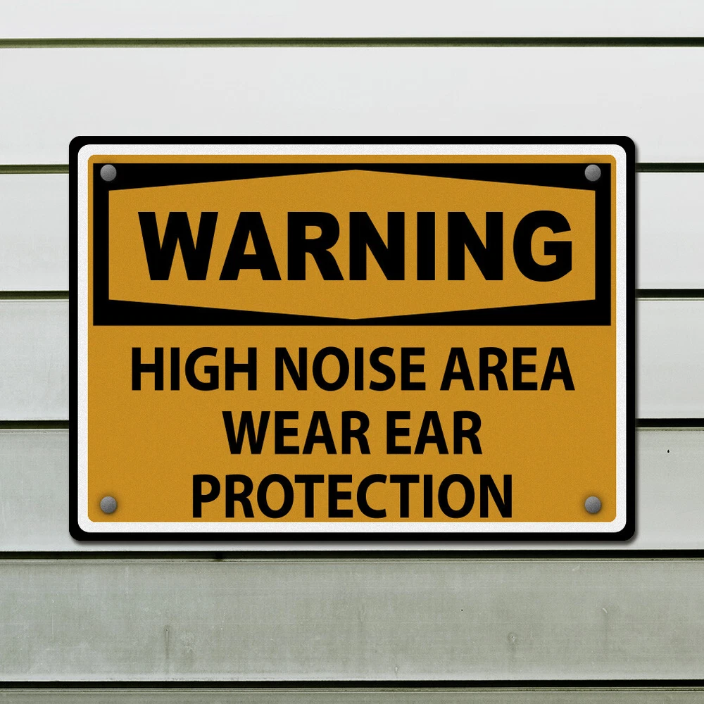 Signs Outdoor/Indoor Metal Personalized sign Protect yourself and avoid accidents with our metal warning sign. Communicate instructions and safety warnings efficiently to others. The text reads: warning high noise area wear ear protection. Perfect for businesses looking for: All Over metal signs, Warning cut signs, signs, wall signs, or yard signs. Make sure your message or instruction catches the attention and is being seen as well as respected. Also available in different shapes and sizes, you will always find the perfect fit for you! Our designs are professionally printed with state-of-the-art equipment guaranteed to last for years. We have more than 12 years of experience in the printing industry to offer you stunning detail and rich lifelike colors. All prints are carefully made in our lab in Tampa, Florida. BEST METAL SIGN ON THE MARKET! **PREMIUM QUALITY: Our industrial metal signs are made of durable .040IN high quality aluminum that will last for decades. Very clear, bold, easy to read lettering that can be read from the distance. **INDOOR & OUTDOOR: Our aluminum yard metal signs can be used indoor as well as outdoor. They can be easily mounted on any surfaces such as walls, doors or fences with zip ties, screws or nails (NOT INCLUDED). **EASY INSTALLATION: Our indoor and outdoor signs come with pre-drilled holes for an easy installation on any surfaces. We left you the easy part... You just have to make sure it is straight! **WEATHERPROOF: Our personalized signs are especially treated against UV, humidity and water thanks to our ink curation. As a result, they will not rust or fade which make them perfect to use indoor and outdoor. **UNIQUE DESIGNS AND GRAPHICS: We put a lot of thought and time in our design process. We are proud to offer you the best selection of informative signs graphic designs, as well as the best variety of safety and ear protection signs designs. Whether you are a business owner or a homeowner, you will be 100% satisfied with our metal signs. PAYMENT TERMS