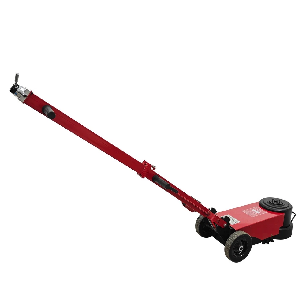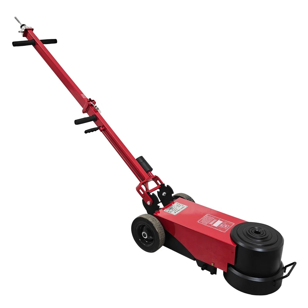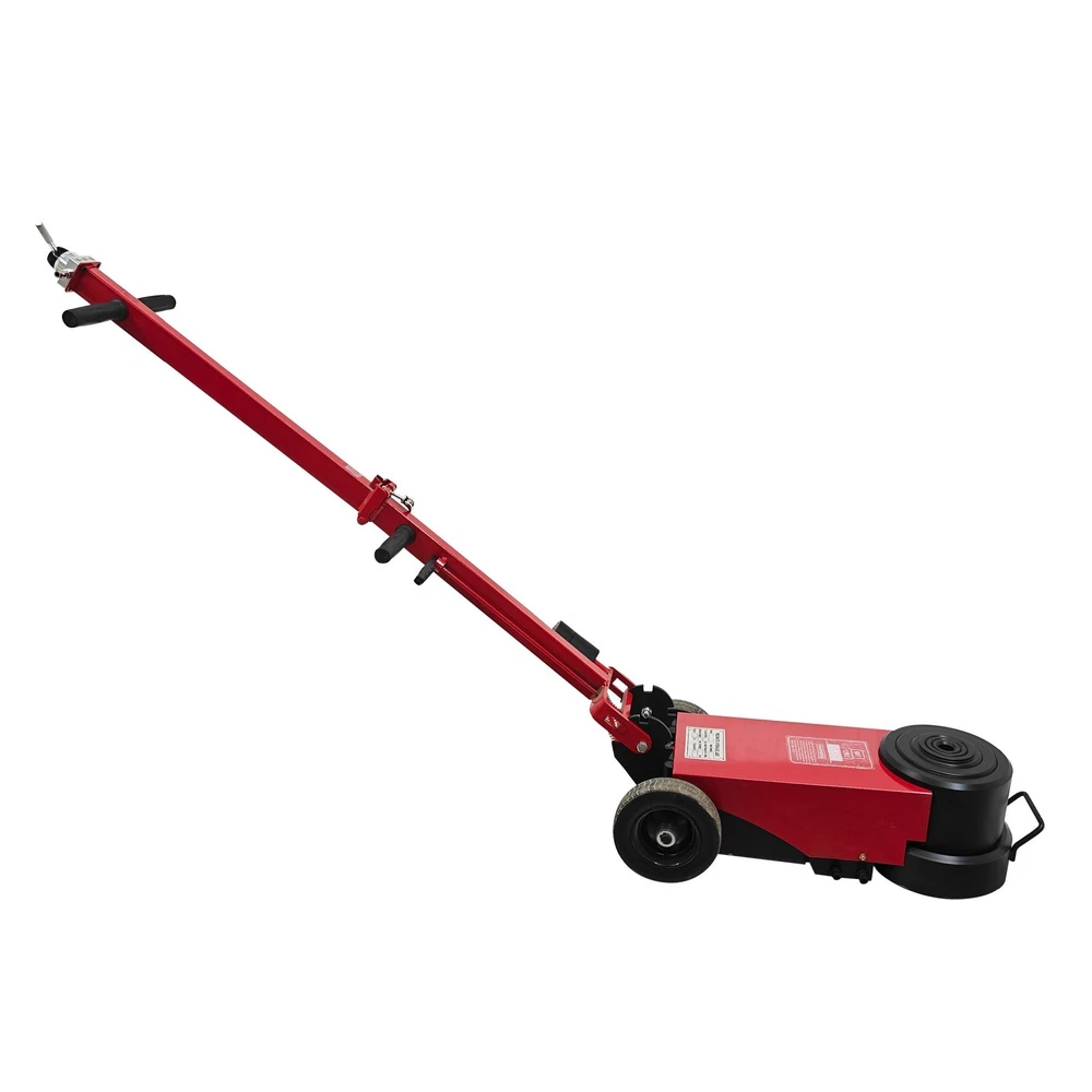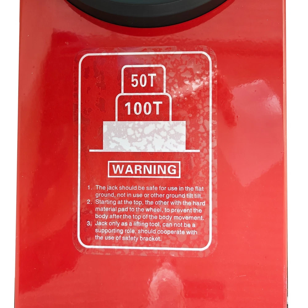 100 Ton Pneumatic Hydraulic Jack, Horizontal Heavy-Duty Air-Powered Shop Press, Portable Hydraulic Cylinder for Industrial Auto Repair, Frame Bending, Metalworking The pneumatic jack is a jacking device using the compressed air as a power source, and is mainly used for mobile jacking scenarios such as automobile maintenance and transportation repair. It lifts heavy objects according to the pneumatic principle and has the advantages of easy operation, quick jacking, high safety, etc. Parameters Load capacity 100T (Load capacity of second layer: 50T) Note: The load capacity of the first layer is the standard load capacity, and the load capacity of the second layer is reduced by half. Minimum height 210 mm (8.27in) Lift height 400mm (15.75in) Rated pressure 0.8-1.2Mpa Top body width 180 mm (7.09in) Machine size 67*29*149cm (26.4*11.4*58.7 inches) Gift Pad iron*2, Height: 5.5cm (2.17in) *1, 3.3cm (1.3in) *1 Note: Customers should prepare the air compressor by themselves. Precaution 1. Before jacking, confirm the weight of the object. Overloading is strictly prohibited. 2. Identify the center of gravity of the object, select a proper jacking point for the jack, and place it stably. Also consider the ground hardness. If necessary, use a sturdy wooden board or similar items to assist in jacking to prevent tilting or falling during lifting. Avoid severe vibration. 3. The used air pressure should be within the rated air pressure range to avoid the phenomenon that the equipment is overloaded to affect the service life. 4. During use, the high-pressure air hose must not be forcibly bent, dragged on the ground, rubbed against surfaces, or run over by heavy objects--all of which will shorten the service life. 5. If multiple jacks are used together, the starting speed should be kept synchronized to ensure balanced load distribution on each jack and prevent falling hazards. 6. The jack uses the 46# anti-wear hydraulic oil, and the sufficient oil quantity must be kept. It is recommended to replace the oil after 3 months of initial use, and every 6 months thereafter. 7. Add the lubricating oil to the cylinder section regularly. The oil can be added through the air inlet connector. 8. After lifting the heavy object, place supports underneath the heavy object for safe operation. 9. To lower the jack, pull the handle at the air distribution valve counterclockwise to achieve automatic descent of the jack. 10. Keep the product clean. It is a normal phenomenon that little oil seepage exists during initial use due to assembly, disassembly or transportation. Features The double-fold design is adopted, the rod can be folded back, the more space is saved, and it is easy to carry and transport. The jack is ideal for fleet vehicles, mobile tire repair and similar scenarios. The double jacking layers can be controlled to ascend and descend. Lifting and lowering are quick, safe and stable, the working efficiency is greatly improved, and the time cost is well saved. The reinforced enlarged wheels are quiet and resistant to wear and reduces the shock. The stress area is greatly increased, the load capacity is effectively increased, and the safety and stability are ensured. Two pieces of heightening pad iron are provided for effectively adjusting the jacking height, meeting the requirements of different working conditions and improving the environmental adaptability. Operation Method 1. Unfold the device, place it on a clean, flat and hard surface, and then connect it to the air compressor. 2. Position the jack under the heavy object to be lifted, and ensure the jack will not fall down or deviate during jacking. 3. Adjust the rated pressure of the air compressor to 0.8-1.2MPa before operation. 4. Pull the handle at the air distribution valve counterclockwise to lower the jack automatically. Product Display Item Included (03AS265C6): 1 x Pneumatic Jack 100T On Mar 1, 2026 at 21:25:37 PST, seller added the following information: