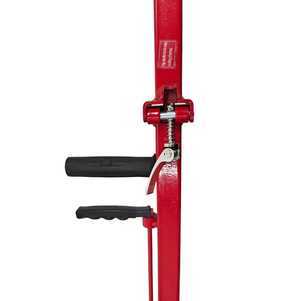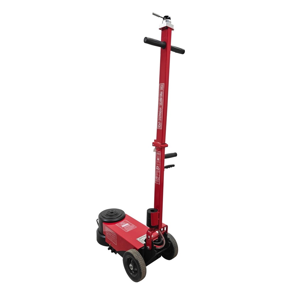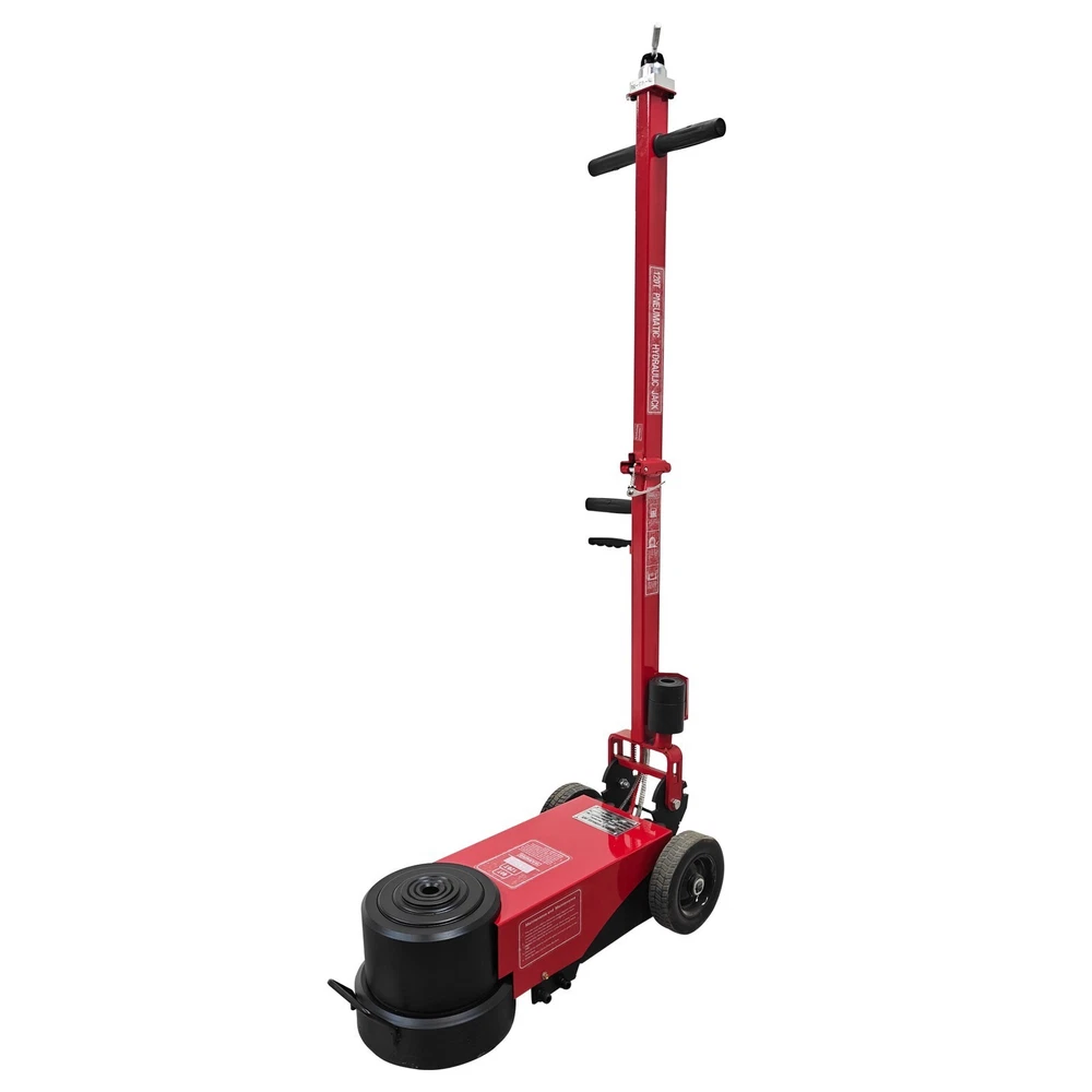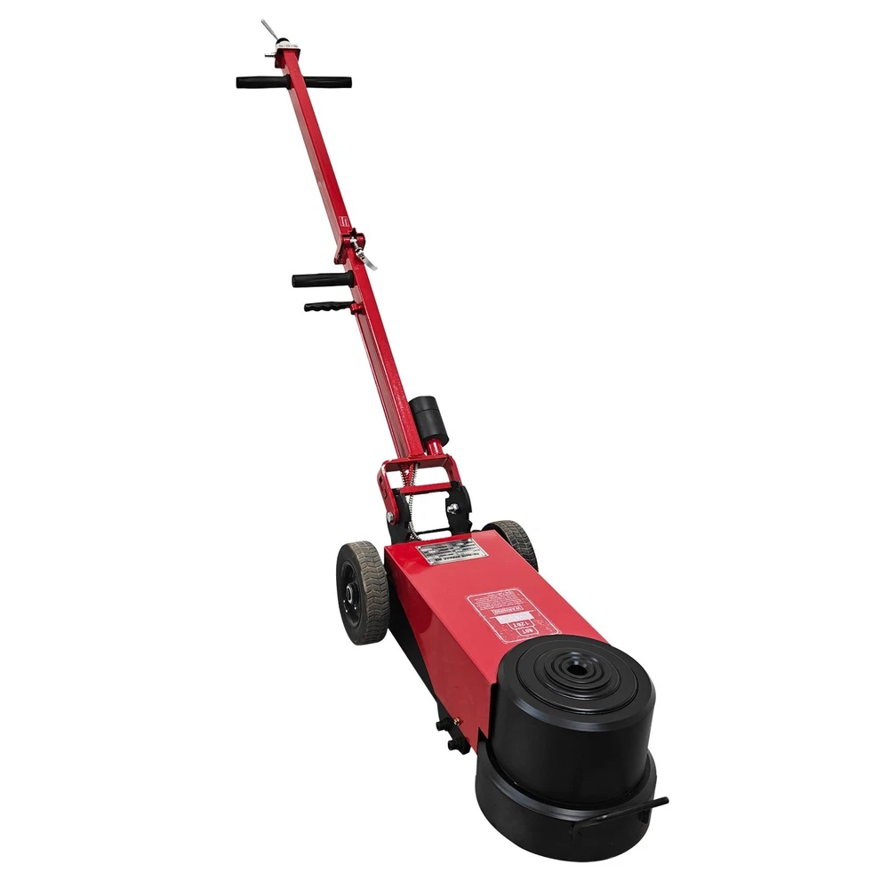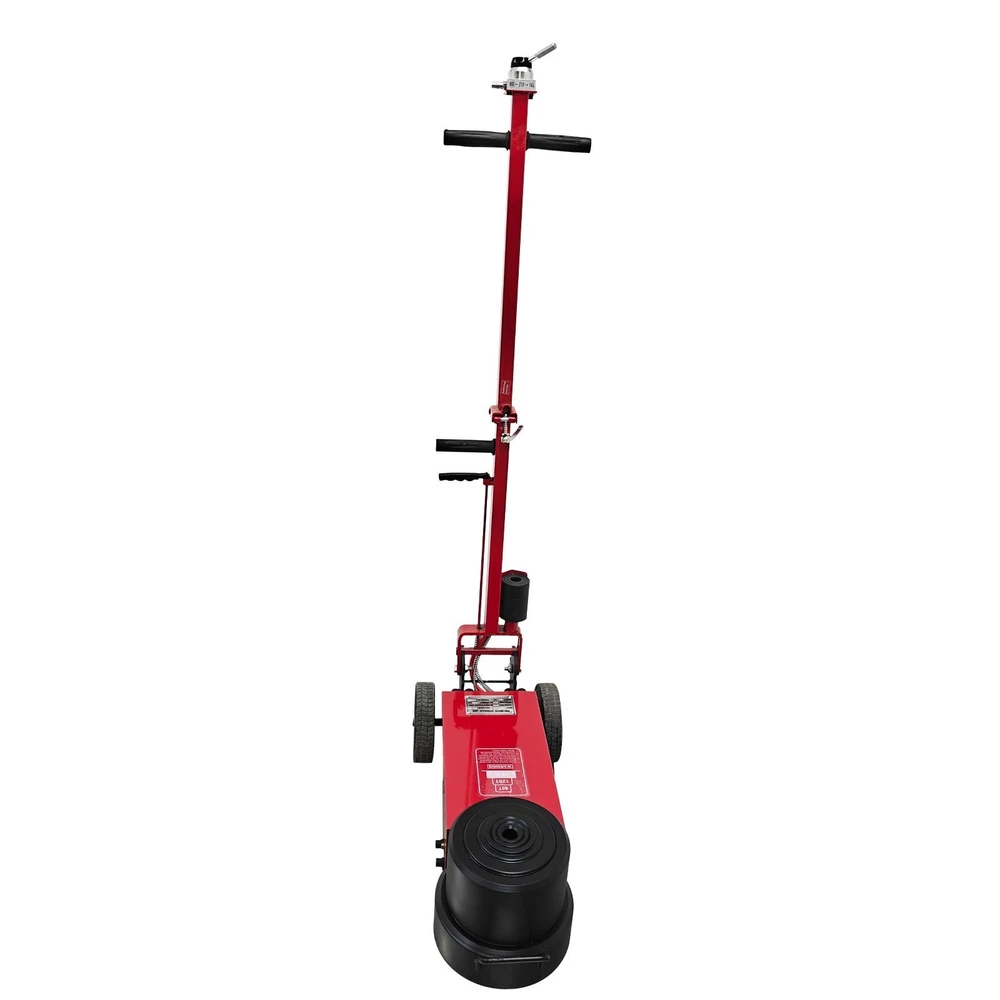 100 Ton Pneumatic Hydraulic Jack, Horizontal Heavy-Duty Air-Powered Shop Press, Portable Hydraulic Cylinder for Industrial Auto Repair, Frame Bending, Metalworking The pneumatic jack is a jacking device using the compressed air as a power source, and is mainly used for mobile jacking scenarios such as automobile maintenance and transportation repair. It lifts heavy objects according to the pneumatic principle and has the advantages of easy operation, quick jacking, high safety, etc. Parameters Load capacity 100T (Load capacity of second layer: 50T) Note: The load capacity of the first layer is the standard load capacity, and the load capacity of the second layer is reduced by half. Minimum height 210 mm (8.27in) Lift height 400mm (15.75in) Rated pressure 0.8-1.2Mpa Top body width 180 mm (7.09in) Machine size 67*29*149cm (26.4*11.4*58.7 inches) Gift Pad iron*2, Height: 5.5cm (2.17in) *1, 3.3cm (1.3in) *1 Note: Customers should prepare the air compressor by themselves. Precaution 1. Before jacking, confirm the weight of the object. Overloading is strictly prohibited. 2. Identify the center of gravity of the object, select a proper jacking point for the jack, and place it stably. Also consider the ground hardness. If necessary, use a sturdy wooden board or similar items to assist in jacking to prevent tilting or falling during lifting. Avoid severe vibration. 3. The used air pressure should be within the rated air pressure range to avoid the phenomenon that the equipment is overloaded to affect the service life. 4. During use, the high-pressure air hose must not be forcibly bent, dragged on the ground, rubbed against surfaces, or run over by heavy objects--all of which will shorten the service life. 5. If multiple jacks are used together, the starting speed should be kept synchronized to ensure balanced load distribution on each jack and prevent falling hazards. 6. The jack uses the 46# anti-wear hydraulic oil, and the sufficient oil quantity must be kept. It is recommended to replace the oil after 3 months of initial use, and every 6 months thereafter. 7. Add the lubricating oil to the cylinder section regularly. The oil can be added through the air inlet connector. 8. After lifting the heavy object, place supports underneath the heavy object for safe operation. 9. To lower the jack, pull the handle at the air distribution valve counterclockwise to achieve automatic descent of the jack. 10. Keep the product clean. It is a normal phenomenon that little oil seepage exists during initial use due to assembly, disassembly or transportation. Features The double-fold design is adopted, the rod can be folded back, the more space is saved, and it is easy to carry and transport. The jack is ideal for fleet vehicles, mobile tire repair and similar scenarios. The double jacking layers can be controlled to ascend and descend. Lifting and lowering are quick, safe and stable, the working efficiency is greatly improved, and the time cost is well saved. The reinforced enlarged wheels are quiet and resistant to wear and reduces the shock. The stress area is greatly increased, the load capacity is effectively increased, and the safety and stability are ensured. Two pieces of heightening pad iron are provided for effectively adjusting the jacking height, meeting the requirements of different working conditions and improving the environmental adaptability. Operation Method 1. Unfold the device, place it on a clean, flat and hard surface, and then connect it to the air compressor. 2. Position the jack under the heavy object to be lifted, and ensure the jack will not fall down or deviate during jacking. 3. Adjust the rated pressure of the air compressor to 0.8-1.2MPa before operation. 4. Pull the handle at the air distribution valve counterclockwise to lower the jack automatically. Product Display Item Included (03AS265C6): 1 x Pneumatic Jack 100T On Mar 1, 2026 at 21:25:37 PST, seller added the following information: