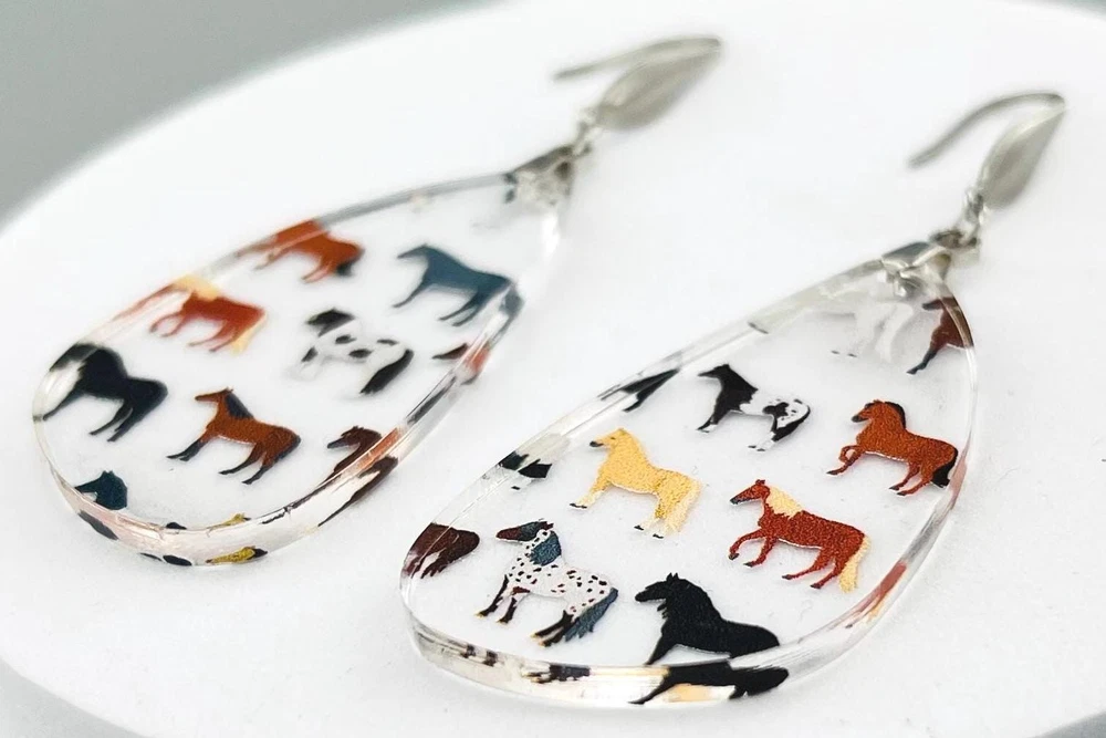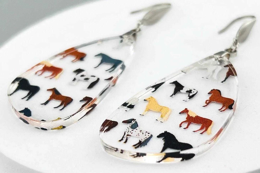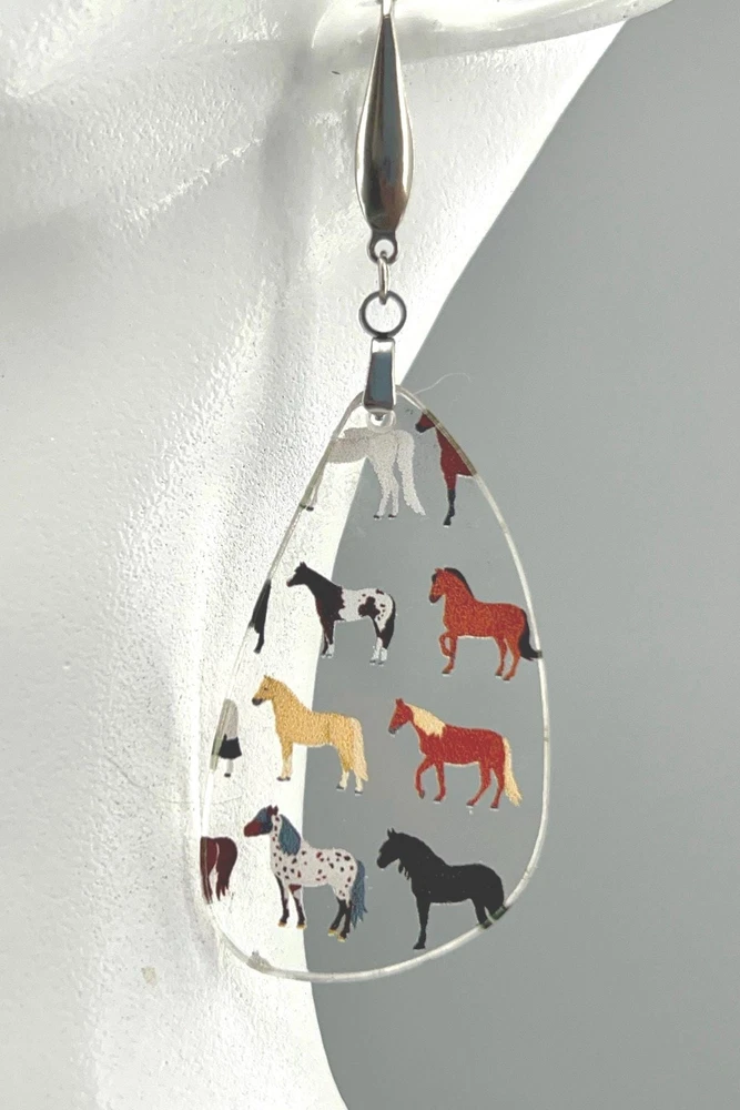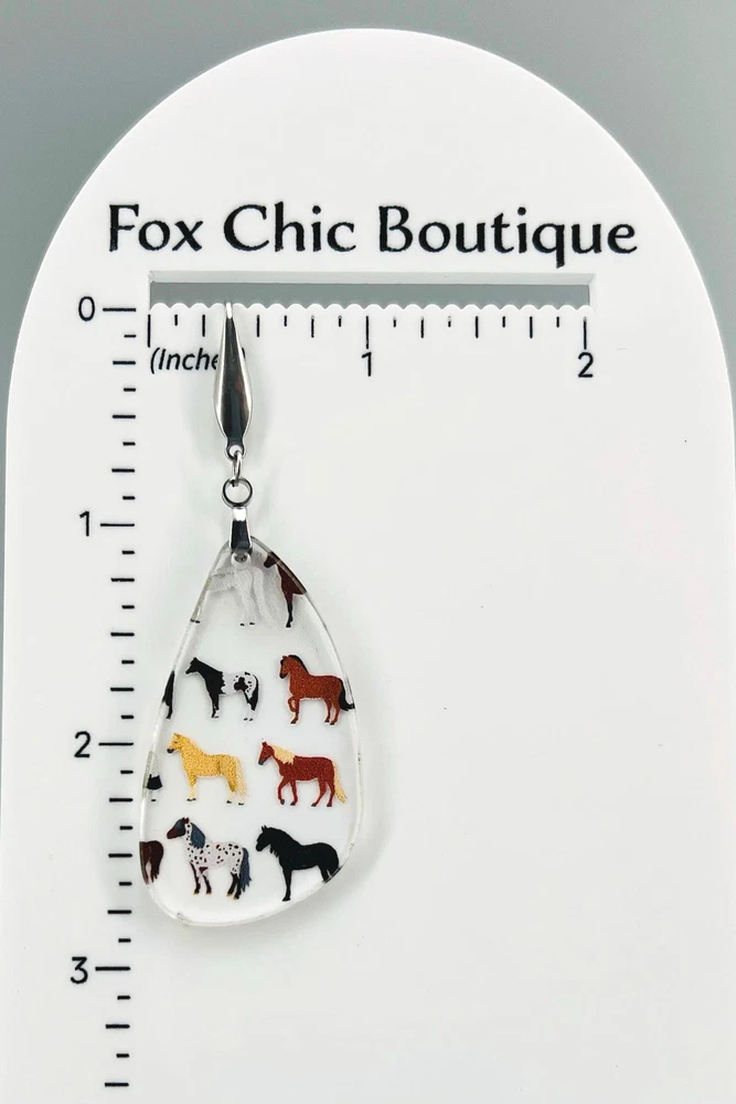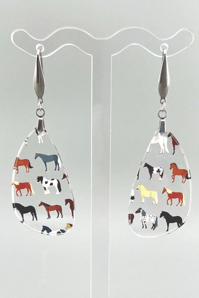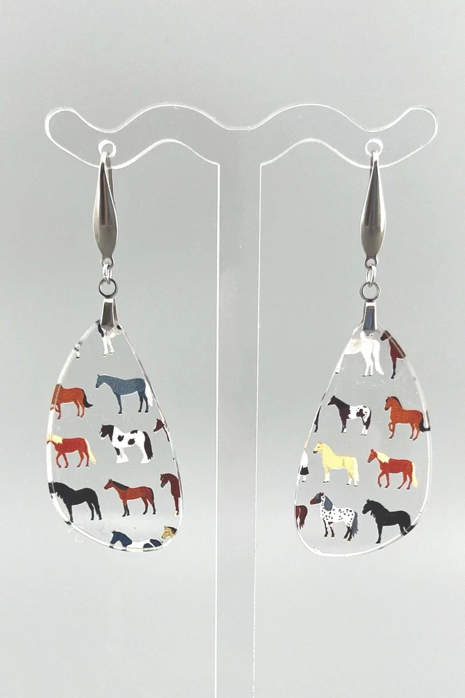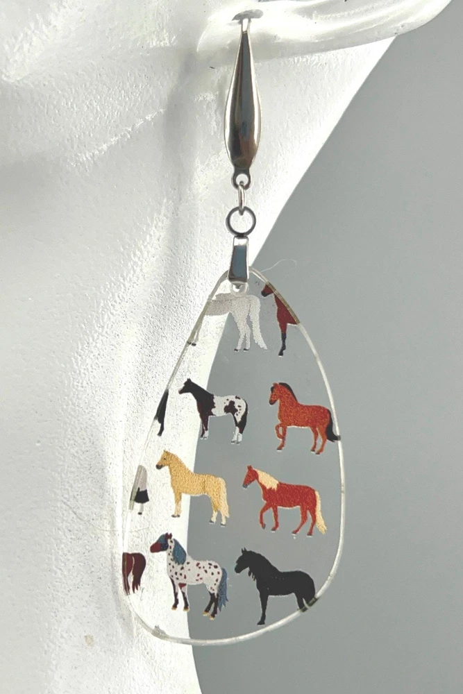 Add a touch of equestrian elegance to your outfit with these stunning Horse Earrings. Perfect for any horse lover, these Western-inspired dangle earrings are a must-have for your jewelry collection. Ideal for rodeo queens, country girls, or anyone who appreciates the beauty of horses. A unique gift for the stylish equestrian in your life. Bring a bit of the stable to your everyday look with these charming Equine Earrings. Lightweight Acrylic Earrings on a Stainless Steel hook. Earring hardware is stainless steel and nickel/lead free. 🌟(Please see item details/highlights/pictures for size information)🌟 Each earring is laser cut from acrylic and assembled by hand in our studio. 🌟Due to variation in the patterns and handmade processes, each earring will vary earring to earring. No two earrings will be identical but will look similar to what is pictured! Each pair of earrings comes on an earring card with silicone backers and packaged in an organza bag. Perfect for gift giving! We currently do not offer more gift-wrapping options. Shipping: All purchases are shipped in a box with tracking so that they arrive safely to you! Currently we only ship to US postal addresses. We have a set standard shipping time of 1-3 business days from the time your order is placed. Everything in our shop is already handmade and ready to ship FAST! Please be aware that unexpected delays can occur, which you will be notified at the time of any such occurrence. Jewelry Care: 🌟Each piece is delicate! Avoid dropping or bending! 🌟Do Not expose to excessive moisture, please remove jewelry before showering, swimming, and sleeping. 🌟Avoid abrasives, perfumes, lotions, excessive heat, chemicals etc. These may deteriorate your jewelry and may damage its appearance. 🌟Clean with the soft cloth we have included in your package (and it is FREE of Charge!) No Returns: Due to hygienic and safety reasons, ALL SALES ARE FINAL. We DO NOT accept returns. In the event you have an issue with your purchase, please feel free to message us on Etsy to discuss any possible resolution.
