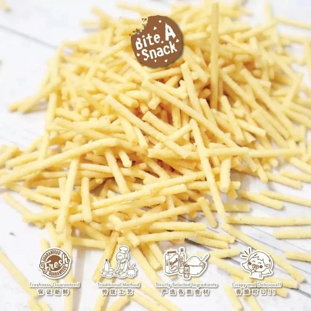 Description Crunchy, savory, and bursting with shrimp flavor, our Janggut Udang (Shrimp Flavored Sticks) is the perfect snack for seafood lovers. These thin, crispy sticks are made from premium wheat flour, shrimp seasoning, and corn starch, offering an irresistible texture and umami-packed taste. Whether enjoyed as a snack on its own or paired with dips, this light and flavorful treat is sure to satisfy your cravings. Ingredients Wheat Flour, Corn Starch, Palm Oil, Shrimp Seasoning, Sugar, Iodized Salt, Raising Agents Allergen Information This product contains no allergens Packaging 200g±/pack Shelf Life Best consumed within 6 months from the date of production. Nutrition Facts (Per 30g Serving): Total Fat :7g, Saturated Fat : 3g, Trans Fat : 0g, Cholesterol : 0mg, Protein: 2g, Total Carbohydrates 总碳水: 19g, Dietary Fiber: <1g, Sugar: 1g, Sodium: 330mg Highlights Authentic Korean Sweet and Spicy Tteokbokki Flavor Light and Crispy Texture with a Crunch in Every Bite Perfect Snack for K-Drama Lovers and Korean Food Fans Long Shelf Life for Anytime Enjoyment