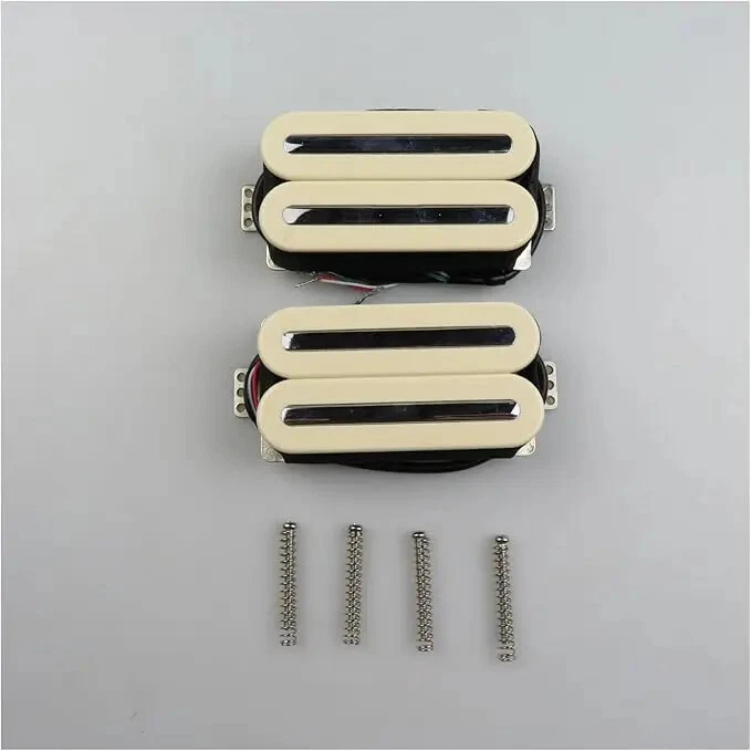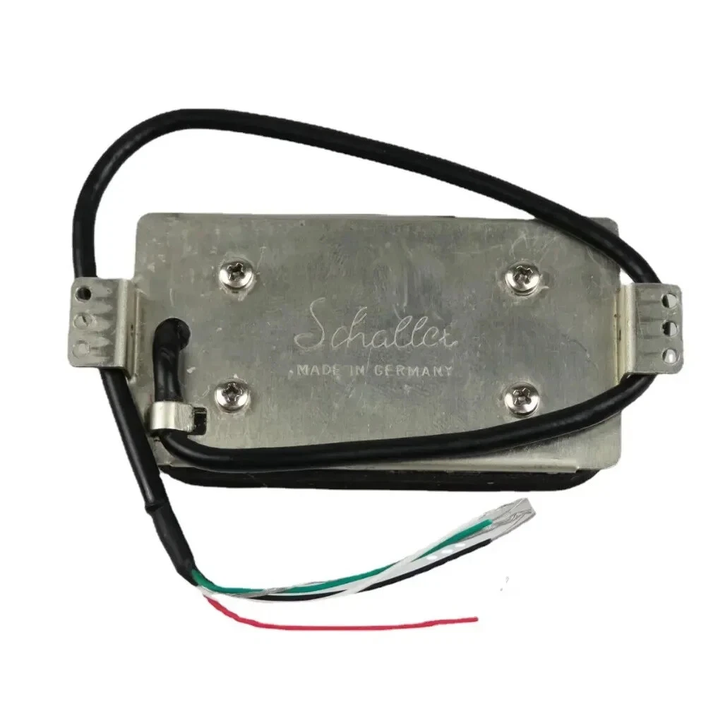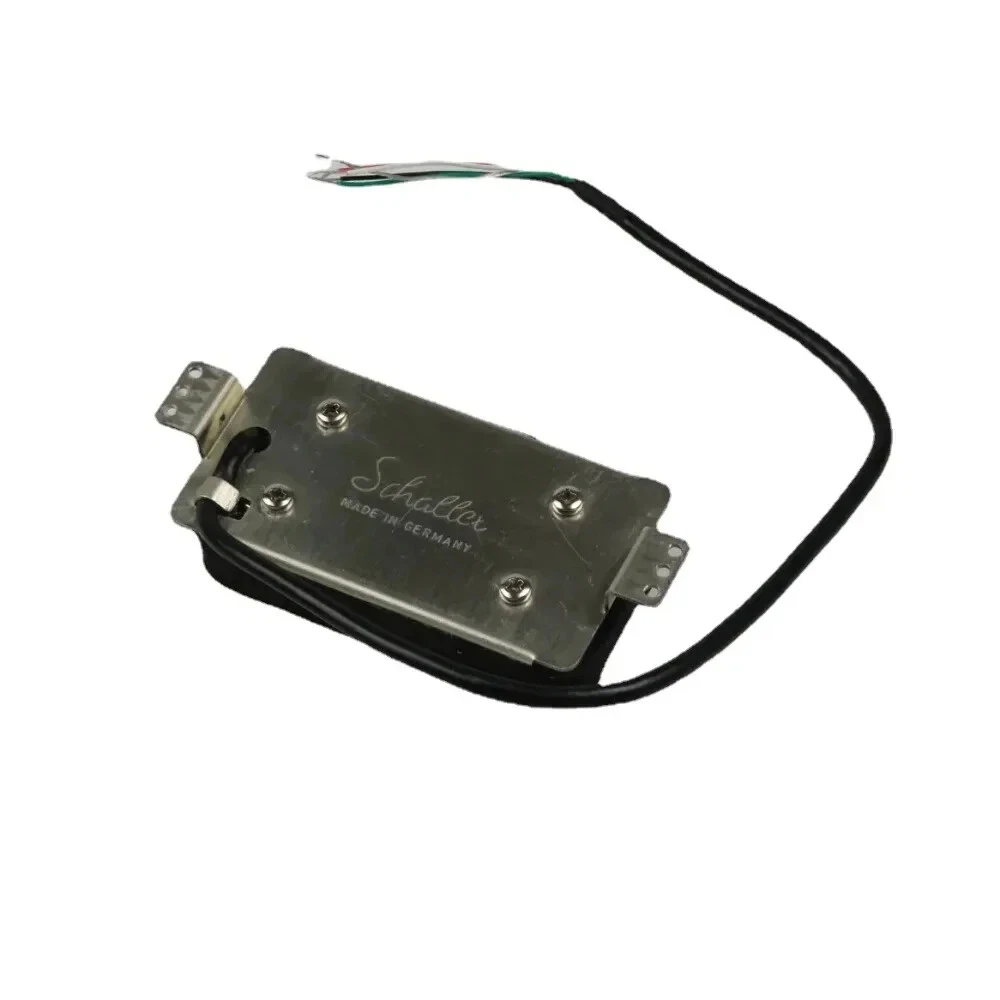 Model: Closed Yoke Neck Pickups 7.16K Bridge Pickups : DC-resistance/ kOhm: 3,6 / 14,4K Surface: Plain Measurements l x w x h (mm): 68x37x22 Weight g/item: 183 Humbucker with 3 strong ceramic magnets and 2 solid iron blades as pole pieces, hence no "dead spot" in the magnetic pick-up of the strings. Super high output and powerful, midrangy sound. Perfect for ultra heavy sounds with fat distortion. Very consistent pick-up even with extreme bendings. 4-conductor lead for series, parallel and single-coil wiring options. All pickups are manufactured to the highest quality requirements and the most demanding quality standards: In order to avoid deviations, the number of coil windings are controlled with utmost care. For a constant sound quality and reduced microphonics, all relevant metal parts are made of German silver. All humbuckers have the international standard dimensions, allowing them to fit into all conventional pickup rings. To avoid microphonic problems, all coils are vacuum-potted by means of a unique method. The colour selection includes black, creme and white plus the black/creme zebra combination. To provide the largest possible range of sounds, all humbuckers have 4-conductor leads. This allows the following wiring options: series, parallel, single coil, and out of phase. humbuckers are easily installed into any guitar where humbuckers were already mounted or planned. The mounting lug on the pickup baseplate has 3 instead of 2 screwholes and is thus universally usable with all common types. Furthermore, the use of the pickup frame with its 4-point fixation reliably prevents a tilting of the pickup in the frame. Installing an Hot Stuff Humbucker changes your guitar's DNA. No matter how dangerous your stock pickup claims to sound, the Hot Stuff Humbucker will transform your guitar into the mean, heavy-sounding beast you always knew it could be. The Hot Stuff Humbucker power comes from the combination of specially overwound coils, three large ceramic magnets, and its striking, oversized metal oxide pole pieces. These unique pole pieces expand the overall magnetic field and widen the frequency spectrum, which is why every note played through an Hot Stuff Humbucker sounds so rich and massive. The ceramic magnets add depth and clarity while hence no "dead spot" in the magnetic pick-up of the