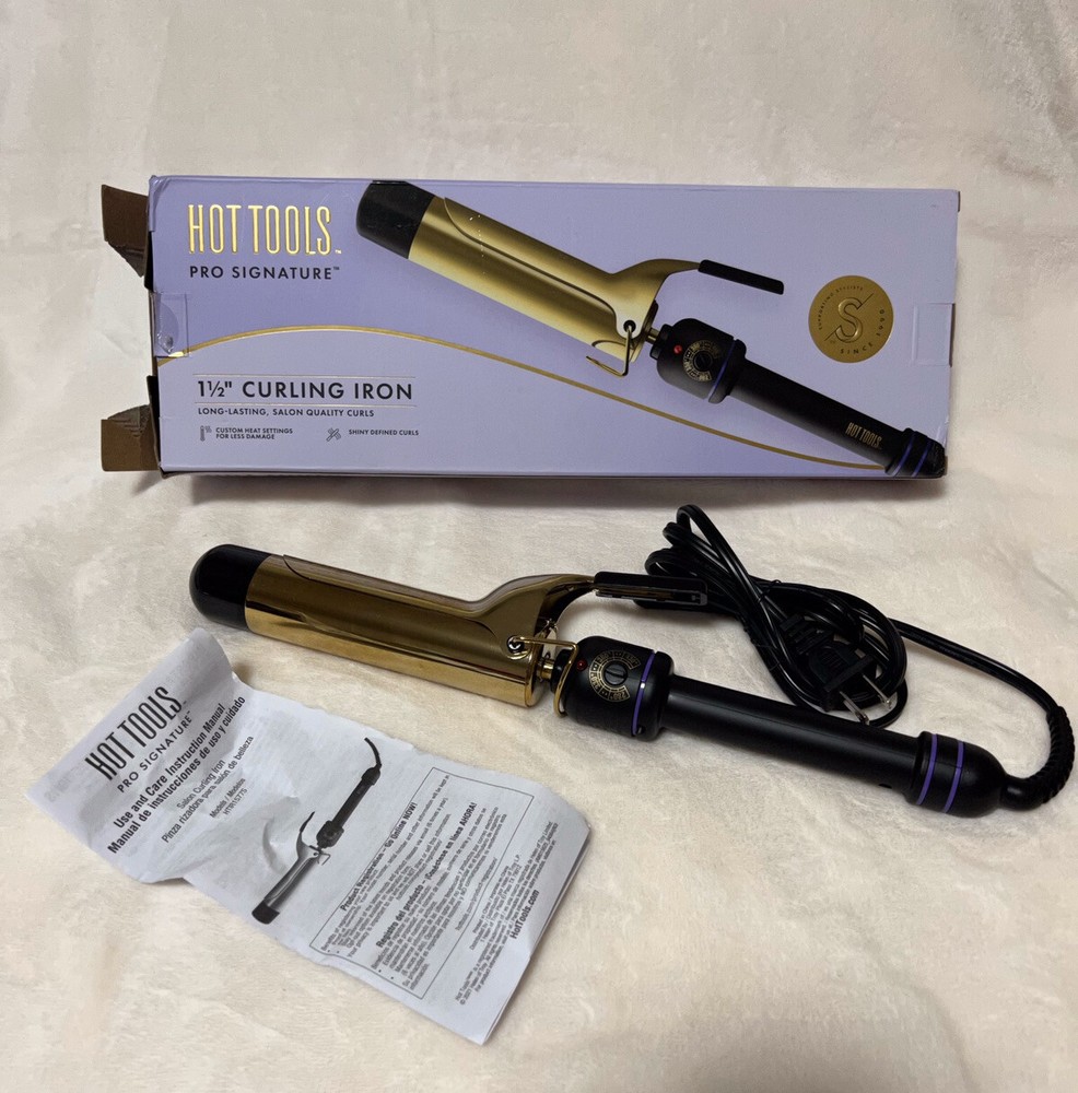 Hot Tools Professional Signature Series 1 1/2" Gold Curling Iron Wand. Used , tested still in good condition. Item: B08