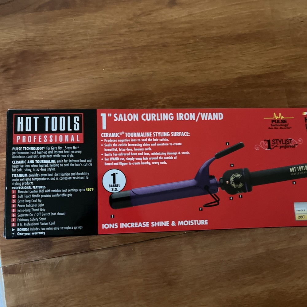 The Hot Tools Professional 1'' Salon Curling Iron Wand is a high-quality hair tool designed for all hair types. With a maximum temperature of 430 °F and ceramic heating plate material, this curling iron provides efficient and salon-quality styling. Featuring adjustable heat settings, ionic technology, and a cool tip, it offers a wide range of styling options while ensuring safe and comfortable use. The sleek purple design, indicator light, and swivel cord make it both functional and stylish for professional or at-home use. Made by the reputable brand Hot Tools, this curling iron is a reliable choice for achieving beautiful curls.