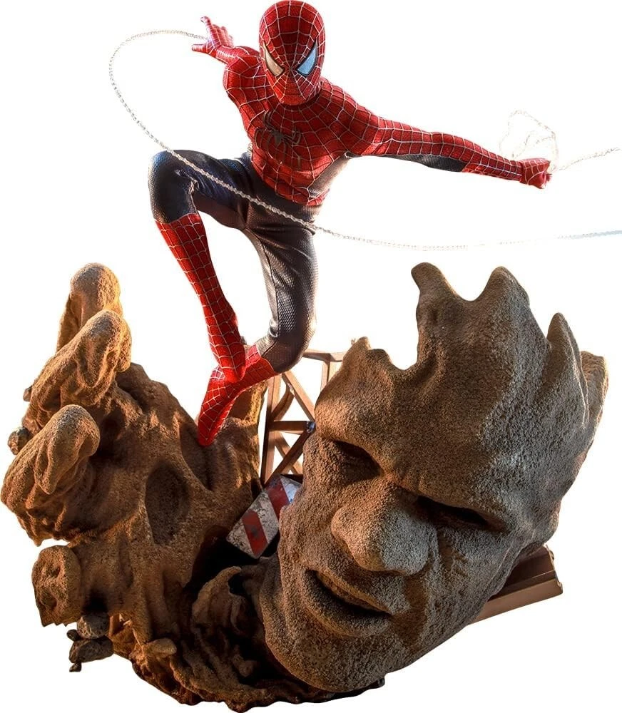 Description Specifications: Spider-Man: Height : Approx. 30 cm (11.8 inches) Sandman: Height : Approx. 19 cm (7.5 inches) Width : Approx. 21 cm (8.3 inches) Depth : Approx. 21 cm (8.3 inches) Articulation Points: 30 Points of Articulation Accessories Included: Interchangeable Head Mask Antidote Spider Webs (x6) Spider Web Effect Parts Interchangeable Hand Parts (x10) Diorama Parts (x2) Diorama Base Hot Toys' "Movie Masterpiece" series includes Marvel's blockbuster action movie "Spider-Man: No Way Home"! Introducing the Friendly Neighborhood Spider-Man (Deluxe Edition) played by Tobey Maguire, who can recreate the battle with Sandman! Peter Parker, a freelance photographer, was bitten by a genetically modified spider when he was a student and gained superhuman powers. After his uncle's death, he became a Spider-Man and protected the peace of New York. One day, Peter Parker (Peter 1) from another universe opens the door to the multiverse. He is sent to Peter 1's universe and once again faces his old enemies as Peter 2. The Friendly Neighborhood Spider-Man, also known as "Peter 2," from "Spider-Man: No Way Home," is three-dimensionalized as a high-end 1/6 scale figure with a total height of about 30 cm and more than 30 movable parts. Two types of heads are included. The first is a head wearing a mask. The second is a new head of Peter Parker's bare face, which has been cleared for the portrait rights of Tobey Maguire, who plays the role. Each head is hand-painted to reproduce the texture of the skin, wrinkles, hairstyle, etc. The newly developed costume is made with attention to detail and materials, such as a red and blue elastic suit, a three-dimensional silver web pattern, and a symbolic spider mark, and is exquisitely finished down to the texture. Accessories include a mask that can be held in the hand and a medicine to cure Sandman. In addition, it comes with effect parts that can be attached to the end of a spider web of various shapes and the deployed state by attaching it to the end of the web. By using it together with the abundant replacement hand parts, including one that points, you can create a variety of situations. In addition, the deluxe version comes with a Sandman diorama base and a warning sign diorama part! Sandman's huge face and hands, the crumbling building, and other details are elaborately sculpted. The base is made of flexible pillars that allow you to freely change the position of the figure, so you can enjoy Spider-Man's unique action scenes, such as web swinging. Friendly Neighborhood Spider-Man fights Sandman again in another universe. This item, which fully captures his charm with Hot Toys' high technical skills, is a must-have item! Keep an eye on Hot Toys' "Spider-Man: No Way Home" series, which will continue to be developed in the future! Shipping We will ship by FedEx or Japan Post International Buyers - Please Note: Import duties, taxes, and charges are not included in the item price or shipping cost. These charges are the buyer's responsibility. Please check with your country's customs office to determine what these additional costs will be prior to bidding or buying. Thank you for your understanding.