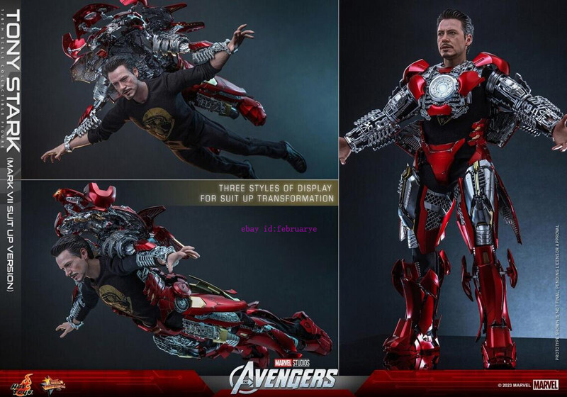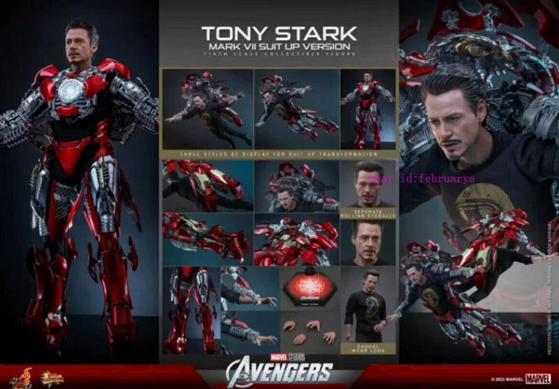 Hot Toys 1/6 MMS718 Tony Stark (Mark 7 Suit Up Version) Normal Edition Action Figure In Stock New Perfect The 1/6th scale Tony Stark (Mark VII Suit up Version) Collectible Figure specially features: - Authentic and detailed likeness of Robert Downey Jr. as Tony Stark suiting up in Iron Man Mark VII in The Avengers - One (1) newly developed head sculpt with separate rolling eyeball system - Movie-accurate facial features with detailed beard, wrinkles and skin texture - Brown color hair sculpture - Newly developed body with over 30 points of articulations and LED light up Arc Reactor on chest (white light, battery operated) - Approximately 31cm tall - Special features on armor: Metallic red and silver colored painting on the sleek and streamline Iron Man armor design - Attachable Iron Man Mark VII armor parts including to simulate the suiting up process including: One (1) set of chest armor with LED lighted arc reactor and detachable armors (white light, battery operated) One (1) set of back armor with shoulder armors attached One (1) pair of upper arm armors One (1) pair of forearm armors One (1) pair of thigh armors One (1) pair of foot armors One (1) pair of wings - Attachable Iron Man Mark V armor parts with articulated function to simulate the suiting up process (Transforming) including: One (1) pair of thigh armors with detachable missile firing parts One (1) pair of calf armors One (1) pair of foot armors - Additional armor directly attachable to figure including: One (1) interchangeable back armor - Two (2) pairs of interchangeable hands including: One (1) pair of relax hands One (1) pair of gesture hands - Each piece of head sculpt is specially hand-painted Costume: - One (1) black T-shirt - One (1) pair of pants - One (1) pair of black shoes Accessories: - One (1) set of armor assembling bracelet (wearable on wrists) - Figure base with specialized figure holder, movie logo and character name plate Due to the light and screen difference, the item's color may be slightly different from the pictures. Please allow 0.5-2 cm differences due to manual measurement. Thank you for your kindly understanding. Payment Items can be purchased using all payment methods allowed by eBay policy Shipping We usually ship to buyer's eBay registered address,and if you buy though paypal,we'll usually ship to paypal address; Economic shipping:usually it will take about 11-20 working days,if it is over 25 days,just tell us,will check for you. Standard shipping: will take about 7-12 working days,if it is over 15 days,please tell us,will check for you. Please note that some countries will have custom duty or tax for certain items. Please contact us if you need help. i will send new invioce to you Sometimes, shipping time could be taken longer during Holiday(like Christams etc.) or Natural disaster . We could NOT be responsible for any delay of this two reasons.We hope it will be received on time. Return If something goes wrong,or you don't want get the items,please contact us before leave feedback,thank you.. 60 Days Money Back--If you are not satisfied with any products you purchased from us, you may return it within 60 days for a full refund . If you need any help,please Contact Us at anytime,will do our best to help you!thanks,have a good time Feedback If you have any problem,please contact us first,we'll do our best to resolve the problem! Satisfied with our service,Please give me a 5 star positive feedback,then I will give you a 5 star feedback too If you are unhappy with the item or our service,please give me a message before leave feedback,just give me a chance,thank you!