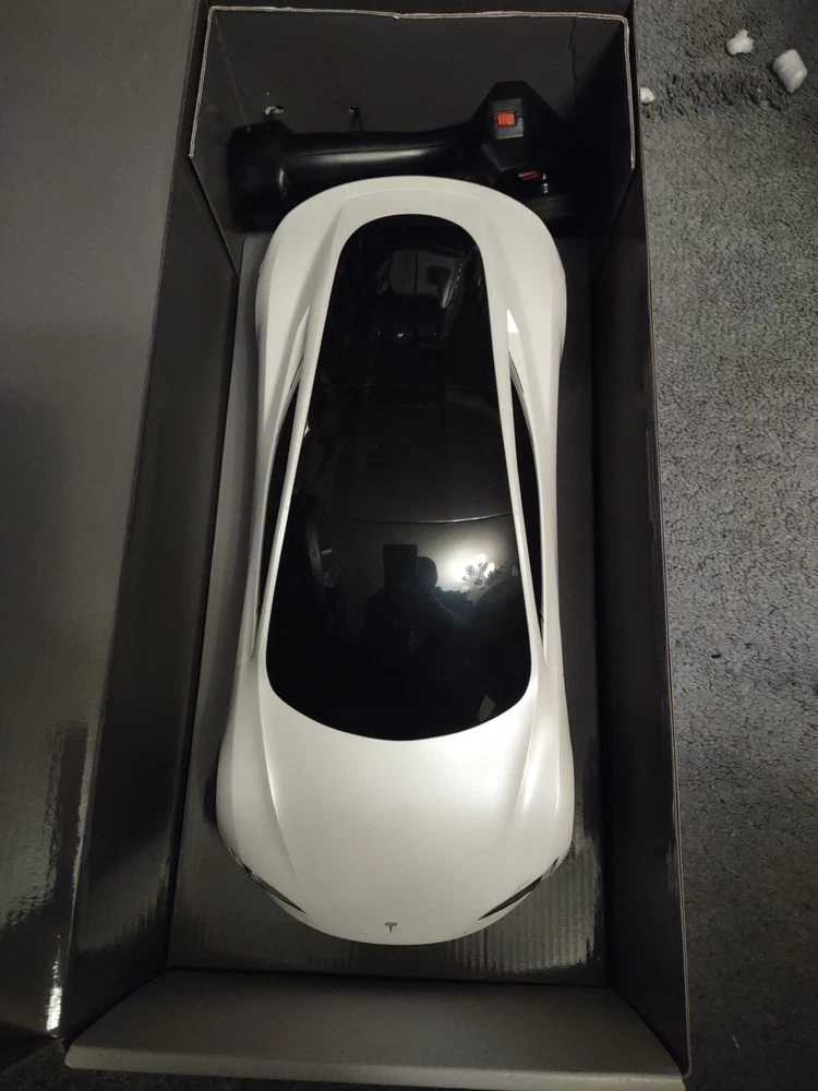This Hot Wheels RC Tesla Roadster is so much fun! The sleek white design looks just like the real thing, and it handles smoothly with the remote. My kid loves racing it around the driveway—durable, fast, and easy to control. The open-box condition was practically new, and it arrived quickly. Perfect gift for any young car enthusiast!