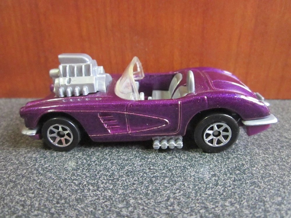 NOTE: We offer combined shipping discounts where possible. If you are purchasing more than one of our items, please add them to your Shopping Cart and click the "Request Total" button. We will send you an invoice reflecting the new total with the combined shipping cost. For sale is a 1:64 scale Hot Wheels 1958 Chevrolet Corvette convertible with a gray interior and blown engine. Although the car is loose (no package), it has been stored in an acrylic case since purchase and is in very nice condition. The photos provided above show the actual vehicle you will receive.