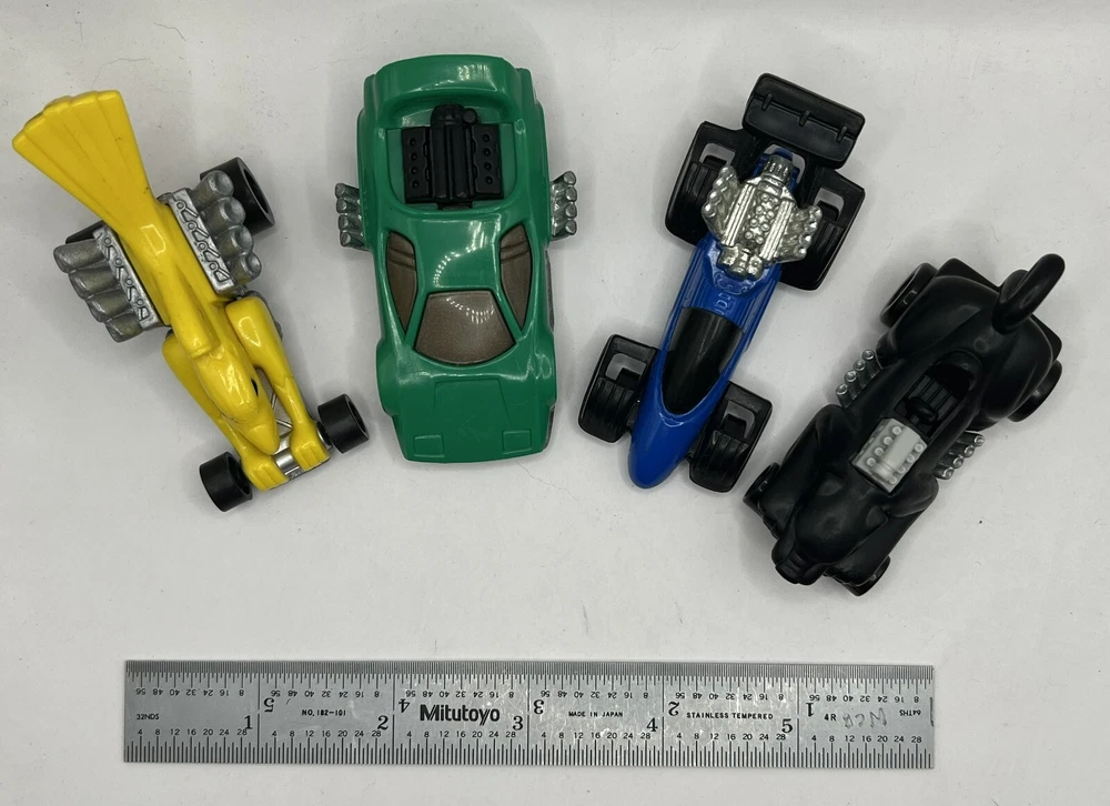 Hot Wheels 1994 McDonalds Exclusive Collection Car 1: Yellow - McDonald's HW Bold Eagle Car 2: Black - McDonald's HW Black Cat Car 3: Green/Yellow - McDonald's HW Street Shocker Car 4: Blue - McDonald's HW X21J Cruiser