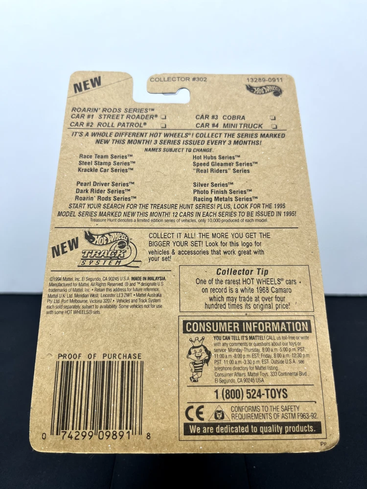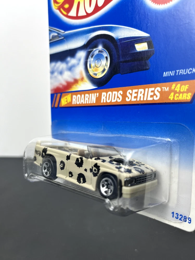 Hot Wheels Mainline 1995 Roarin' Rods Series Mini Truck is a must-have for any diecast and toy vehicle collector. The car is part of the Hot Wheels Roarin' Rods series and is a 1:64 scale model. Perfect for collectors or anyone who loves cars and wants to have a unique and rare addition to their collection. The car has been stored in a smoke-free and pet-free environment, and it is in good condition. The car comes with the original packaging and instructions, making it easy to display and keep safe. Overall, this Hot Wheels Mainline 1995 Roarin' Rods Series Mini Truck is a great investment and a perfect addition to any collection. Cards and blisters are not perfect and may have creases, soft corners, stickers, and or cracks, see photos. Additional photos can be provided on request. All items are shipped and sold from the USA. Will ship in a corrugated box with bubble wrap ***NO BUBBLE MAILERS***