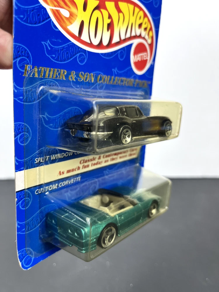 Hot Wheels 1997 Avon Exclusive Father & Son Collector 2 pack Split Window Corvette & Custom Corvette is a must-have for any diecast and toy vehicle collector. The car is part of the Hot Wheels Avon series and is a 1:64 scale model. Perfect for collectors or anyone who loves cars and wants to have a unique and rare addition to their collection. The car has been stored in a smoke-free and pet-free environment, and it is in good condition. The car comes with the original packaging and instructions, making it easy to display and keep safe. Overall, this Hot Wheels 1997 Avon Exclusive Father & Son Collector 2 pack Split Window Corvette & Custom Corvette is a great investment and a perfect addition to any collection. Cards and blisters are not perfect and may have creases, soft corners, stickers, and or cracks, see photos. Additional photos can be provided on request. All items are shipped and sold from the USA. Will ship in a corrugated box with bubble wrap ***NO BUBBLE MAILERS***