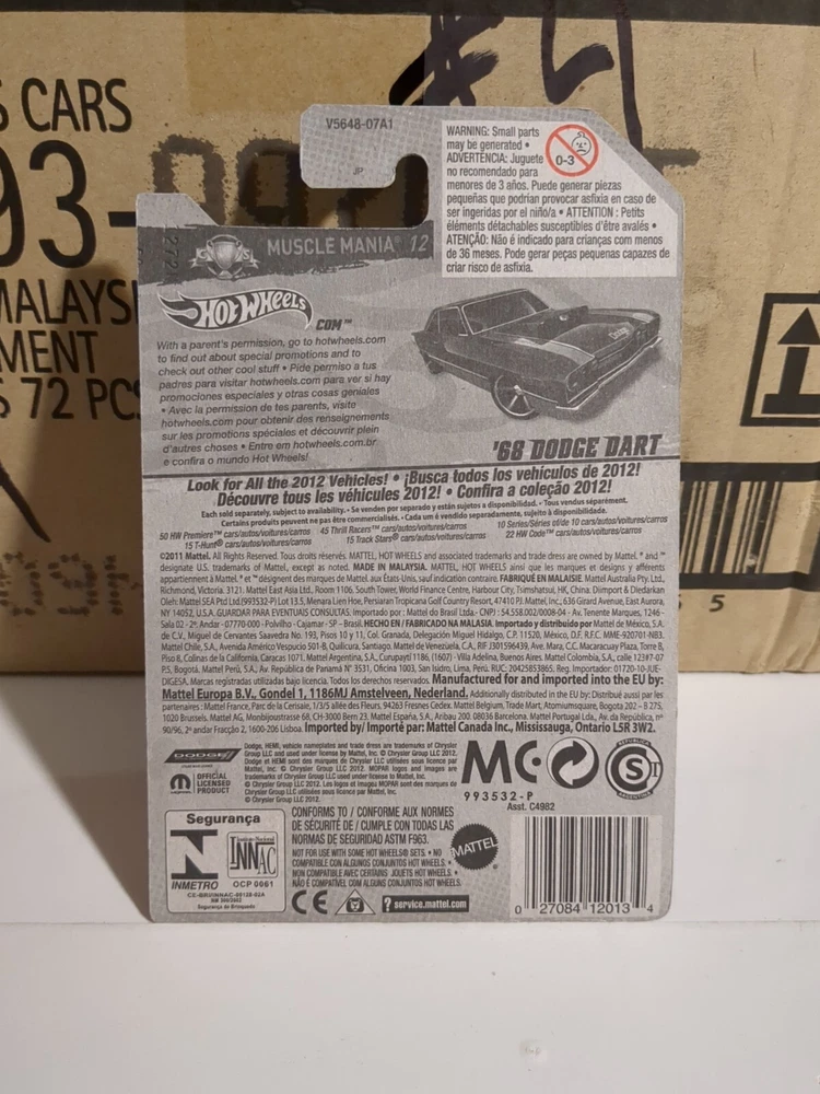 This Hot Wheels car is a must-have for any collector! It features a metallic blue body with 5SPs, and is part of the Muscle Mania Mopar '12 series. The 1:64 scale diecast model is a 1968 Dodge Dart, and was manufactured in 2012. The car comes in its original packaging and has never been opened. This is a rare find for any Hot Wheels enthusiast, and would make a great addition to any collection. See pics for condition