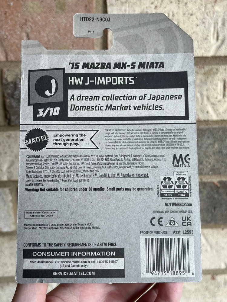 Contemporary manufacture Hot Wheels of OG STOCK colorways of CLASSIC Japanese (JDM), European (EDM) and American (USDM) cars! These are OG classics! Don't miss them! Plus, prices are better than 95% of other collectors! What you see is what you will receive! Quantity: 1 2015 Mazda MX-5 Miata HW J-Imports 3/10 #69/250 Please visit my store for more and don't hesitate to reach out!!
