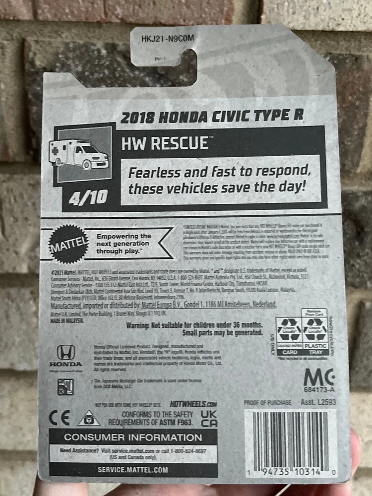 Contemporary manufacture Hot Wheels of OG STOCK colorways of CLASSIC Japanese (JDM), European (EDM) and American (USDM) cars! These are OG classics! Don't miss them! Plus, prices are better than 95% of other collectors! What you see is what you will receive! Quantity: 1 2018 Honda Civic Type R HW Rescue 4/10 #215/250 Please visit my store for more and don't hesitate to reach out!!