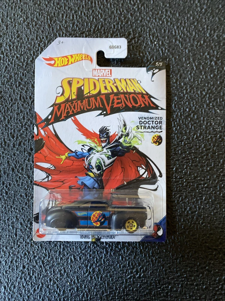 This is a Hot Wheels 2020 Marvel Spider-Man Maximum Venom 1:64 Diecast Set of 5. The set includes five cars, each featuring a different character from the Marvel universe. The cars are made of diecast material and come in an unopened box. The set is part of the Hot Wheels Marvel series and is a great addition to any fan's collection. 1. Venomized Spider-Man / 70 Dodge Hemi Challenger 2. Venomized Iron Man / Jack Hammer 3. Venomized Captain America / 71 El Camino 4. Venomized Groot / Custom 15 Ford Mustang 5. Venomized Dr. Strange / Tail Dragger