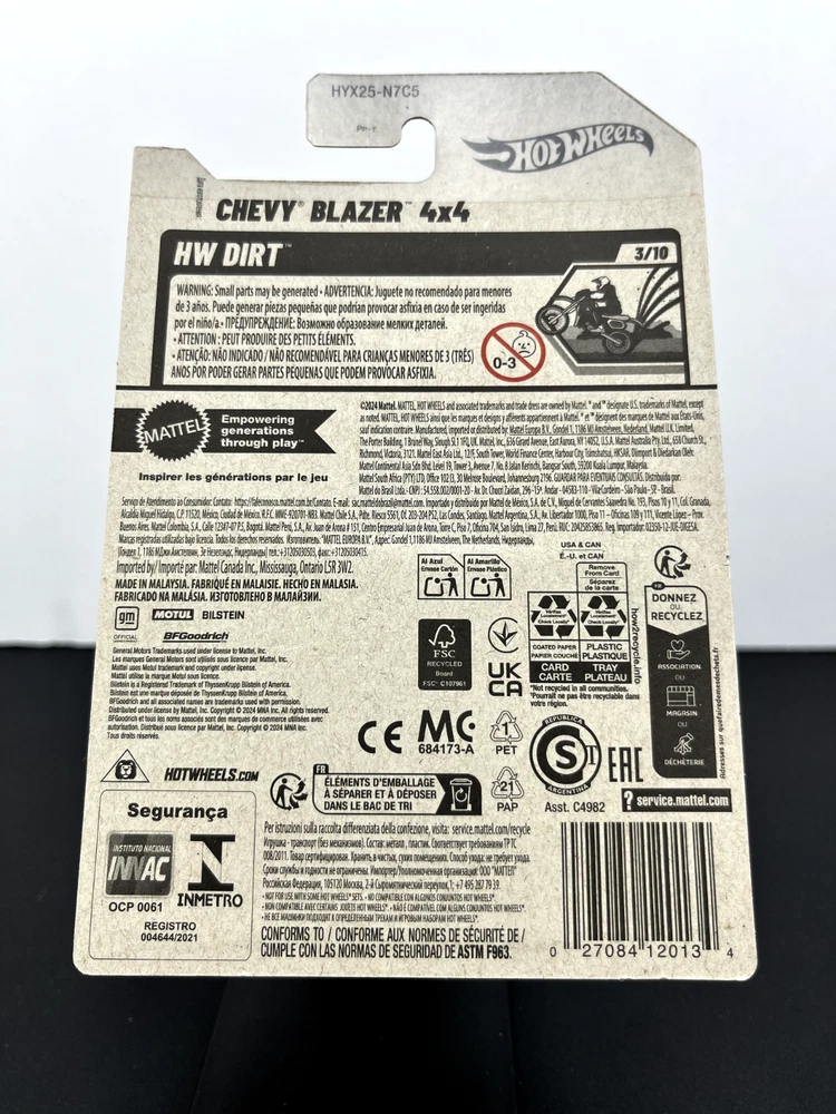 Hot Wheels 2025 Mainline HW Dirt Chevy Blazer 4x4 is a must-have for any diecast and toy vehicle collector. The car is part of the Hot Wheels Dirt series and is a 1:64 scale model. Perfect for collectors or anyone who loves cars and wants to have a unique and rare addition to their collection. The car has been stored in a smoke-free and pet-free environment, and it is in excellent condition. The car comes with the original packaging, making it easy to display and keep safe. Overall, this Hot Wheels 2025 Mainline HW Dirt Chevy Blazer 4x4 is a great investment and a perfect addition to any collection. All items are shipped and sold from the USA. Will ship in a corrugated box with bubble wrap ***NO BUBBLE MAILERS***