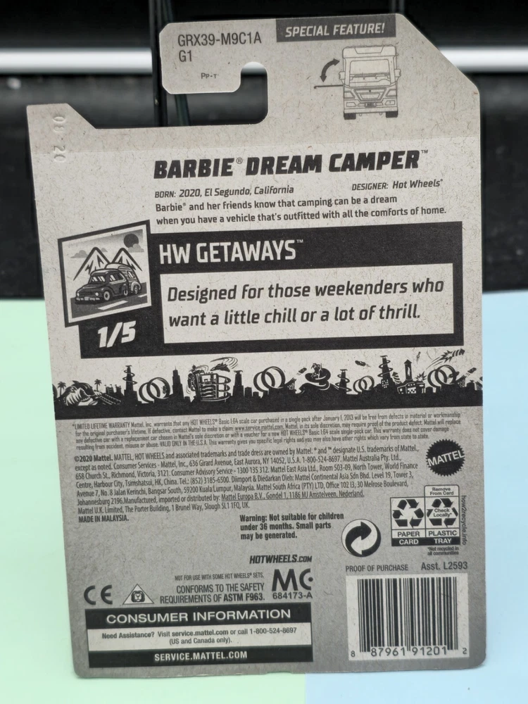 Color: Pink Year of Manufacture: 2020 Vehicle Make: Hot Wheels Character Family: Barbie Material: Diecast Vehicle Year: 2020 Series: Hot Wheels Barbie gtin13: 027084120134 Brand: Hot Wheels Model: Barbie Dream Camper Scale: 1:64 UPC: 027084120134