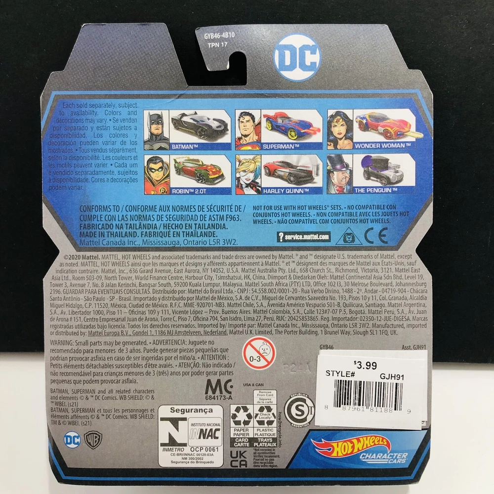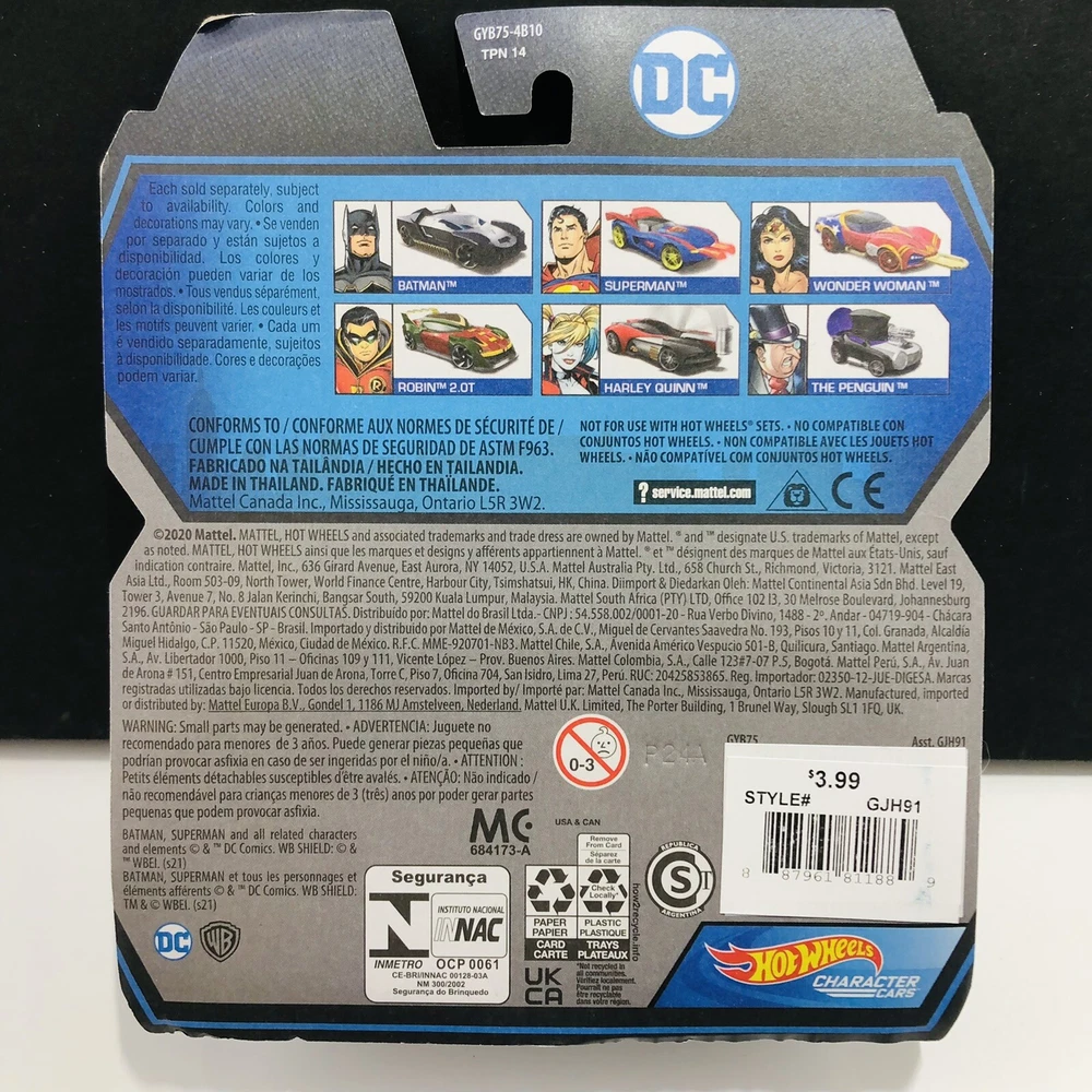 2020 Hot Wheels DC Character Car Batman 2022 Hot Wheels DC Character Car Harley Quinn Listing Details: -Lot of 2 -Photos are of the 2 you will receive. -The blisters and cards are in good condition, there may be some light normal shelfwear such as a soft corner and/or small creases on card. -Please See Photos for Better Description. Shipping: -ALWAYS Shipped In Box!! -I take pride in my packaging. I wrap all carded cars with frog tape to protect the bubble! -I typically ship next depending on time of purchase. -SORRY RATES HAVE GONE UP IN 2023, the Post Office raised all their rates considerably ~ Return Policy ~ Free Return Shipping eBay Money Back Guarantee applies when: * Damage during shipping. * The buyer doesn't receive an item. * The item received by the buyer doesn't match the listing, for example: * Item isn't as pictured. * The seller sent the wrong item, or * The item arrives broken, damaged, or faulty This Return Policy does NOT apply to remorse reasons. Just because you don't want it anymore isn't a justified reason for a free shipping return. I will accept the return but buyer must pay shipping. The buyer must return the item in the same condition in which it was received. If the returned item is used, damaged, or missing any parts, or is damaged during return shipping because it wasn't packaged correctly, seller might provide a partial refund for the loss in the item's value. The listing pictures will serve as how item is expected to look when buyer receive return. Once received, I will have 2 business days to review the returned item and issue a buyer refund, or ask eBay to step in and help. You are responsible for packing the items as well as you received it!!!!!!! Other: I understand the art of getting an item to a destination in the same condition in which it left my home. If there is a problem with the item, please contact me before doing anything. I will do what I can to make it right. I do not accept returns. --Comes from a Smoke Free Home-- Please feel free to message me with any questions or concerns. Thank You! Rarely are cards perfectly mint. Most items are in good to excellent condition. However, the condition of collectible items is often subjective. Although I make every attempt to list items correctly and provide detailed photographs of imperfections, it is up to the buyer to satisfy themselves that they have gained enough information on condition before purchasing. Please refer to pics for condition.