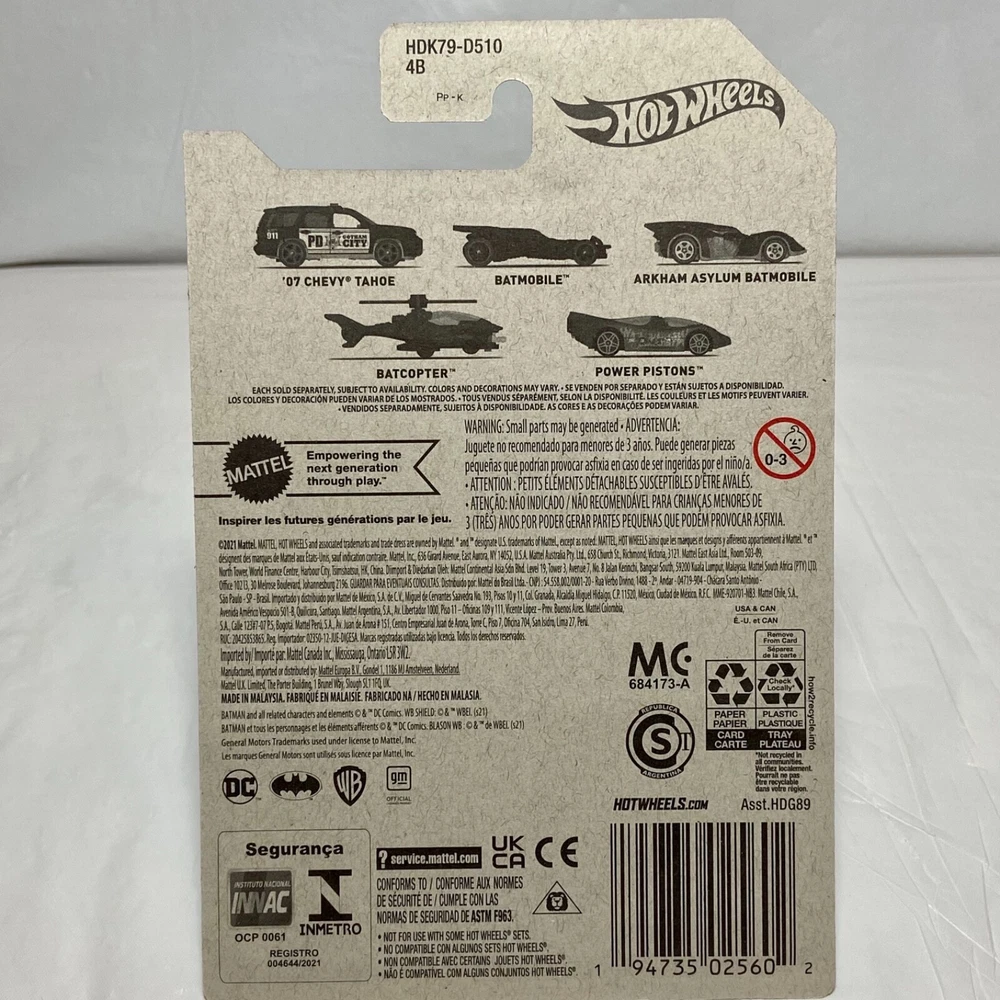 Country/Region of Manufacture:MalaysiaModel:Hot Wheels BatmobileMaterial:DiecastFeatures:Advertising Specimen, Limited Edition, Special Edition, Unopened BoxMPN:Does Not ApplySeries:Hot Wheels DC BatmanCustomized:NoTheme:BatmanUPC:Does Not ApplyBrand:Hot WheelsVehicle Year:2022Vehicle Make:Hot WheelsAutographed:NoRecommended Age Range:3+Vehicle Type:Cargtin13:Does Not ApplyColor:BlackYear of Manufacture:2021Age Level:3-4 YearsCharacter Family:BatmanScale:1:64Gender:Boys & Girls