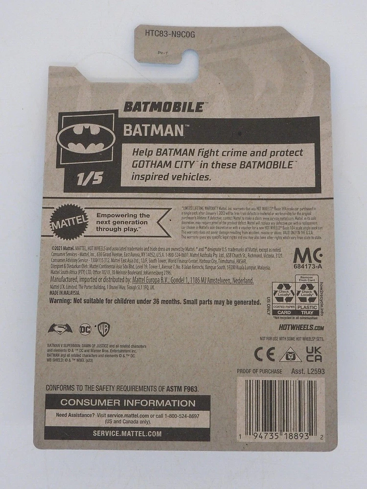 * NEW * Up for auction is a Hot wheels Batman mint , sealed, on mint card #2/250 from series Batman #1/5 never open and sealed. This is a major error car and very collectible for any Hot wheels collector. First the rivet on bottom front is missing, then the front tires with axle is all missing and the color of the car seems to be off. [ SEE PICTURES ] Really cool. As always we offer combine shipping in the USA and please do not pay utill you receive a invoice, Thank you.