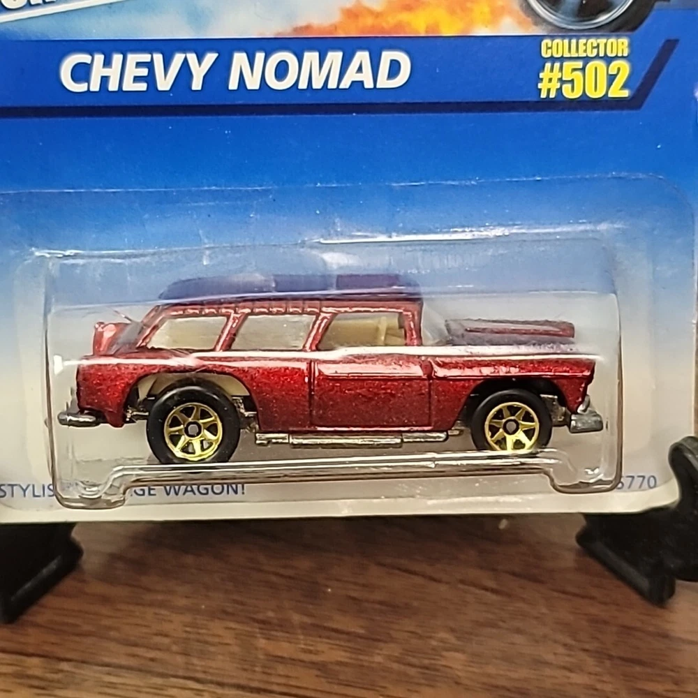 Color:RedVehicle Type:CarMaterial:DiecastModel:Chevy NomadScale:1:64Autographed:NoCustomized:NoYear of Manufacture:1995Character Family:CarsVehicle Year:1955Brand:Hot WheelsSeries:Hot Wheels Blue CardUPC:Does not applyVehicle Make:Chevroletgtin13:Does not apply