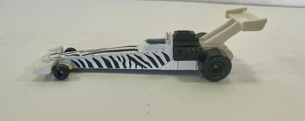 This vintage Hot Wheels Dragster diecast race car is a must-have for any collector or racing enthusiast. The black and white zebra design is eye-catching and unique, making it a standout piece in any collection. Made of high-quality diecast metal and at a scale of 1:64, this model is a great addition to any racing series. With no modifications and manufactured in 1993, this Hot Wheels car is a great piece of racing history. Recommended for ages 3-4 years and up, this car is perfect for both boys and girls. The Hot Wheels Racing series is known for its quality and attention to detail, making this model a great addition to any collection.