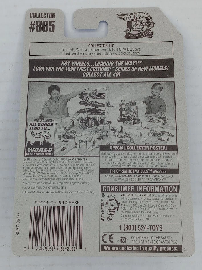 Hot Wheels Ford F-150 #865 Truck White Marcus Mine Line 1998 NIP 3 Spoke Rims SKU#101735 Look closely at the pictures to see further details. We ships USPS PLEASE see photos for detailed condition!! PLEASE LOOK AT THE PHOTOS CAREFULLY BEFORE PURCHASING!! If you are purchasing more than one item from us and would like combined shipping, PLEASE request an adjusted invoice from us while still in the cart and BEFORE paying. eBay does not usually calculate combined shipping accurately and you might get overcharged. Please be aware that when we photograph items, we use lighting that will show the details well. Although we try to present the product as accurately as possible, the lighting may affect the overall look of the item by appearing lighter/darker or possibly a different hue than the actual item. Depending on the type of lighting you have in your home, there may be some differences between the photos and the actual item. If this is a concern of yours, please feel free to request additional photos made in natural lighting or ask for a more detailed description of the item PRIOR TO PURCHASE! PLEASE NOTE: We greatly appreciate your interest in our item for sale. We look forward to a pleasant, quick and satisfying transaction for everybody, so please note the following information before bidding. Thank you! ITEM DESCRIPTIONS: * We will try to describe items well and provide plenty of photos. Please review these carefully before bidding or purchasing. * Only the items pictured and described are what you will receive when purchased. * We will occasionally offer an item clearly marked "AS-IS". This means that we are not sure if it works because we are unable to test it for whatever reason. We will offer these at a discounted price then a similar "working" item. It is possible that these items will work fine, but it also is possible that these items are more useful for their parts. Please only bid on or purchase these items if you are well aware of this, as we will only provide refunds of actual item price (no shipping cost refunds) for these items. * If you have any questions that aren't addressed by the descriptions or photos, please feel free to ask before you bid. * There may be bends, dents or parts of the blister that have minor issues due to long term storage. Such things will be pointed out under the description, please look closely at the pictures for further details. SHIPPING: * We usually do not offer shipping to international addresses, but ARE WILLING TO TAKE CONSIDERATIONS. * We try to pack items as carefully as possible, but damage may occur during shipping. If you receive an item that was damaged in shipping, please contact us and we will work with you to resolve the problem. * We will combine shipping costs for all items the same buyer purchases from us within 2 days. Please wait to pay for items until you're done shopping with us. Please contact us if you're expecting to buy more items from us, or to have us adjust the shipping costs. * We will usually ship items out within 24 hours of payment being received Sunday through Friday at noon. We will notify the buyer if there will be a delay in shipping for some reason. Please allow additional time for holidays and weekends when the post office is closed. If payment is received after noon (EST) on Friday, the item might not be shipped until the following Monday. * We do try to recycle shipping materials as much as possible. RETURNS: We abide by eBay's Money Back Guarantee. We definitely want our customers to be happy with their purchase! You may return an item within 30 days of receiving it with the following guidelines: * If the item is defective or damaged (unless we clearly marked the listing "AS-IS"), the buyer will receive a full refund after the buyer returns it and it is received by us. Customers who falsely claim their item is defective, damaged, or not as described in order to receive a full refund and free return shipping will be permanently blocked from making future purchases from us. * If the item is as described (including "AS-IS" items) and the buyer decides for any other reason than defective/damaged to return it, only the actual price of the item will be refunded once it has been returned and it is received by us. The buyer will be asked to pay all original and return shipping charges. This includes all reasons other than defective/damaged, including wrong size, wrong type, changed mind, etc. All "AS-IS" items will fall into this category of return. Please make sure the item is what you want before purchasing it. * Please contact us before initiating a refund request. FEEDBACK: We always leave feedback at the end of transaction. We consider the transaction to be over when we receive feedback from the buyer confirming the item arrived satisfactorily. If you are unsatisfied with your purchase please contact us before leaving neutral or negative feedback. WE APPRECIATE POSITIVE FEEDBACK IF YOU ARE SATISFIED WITH YOUR PURCHASE! THANK YOU FOR YOUR INTEREST IN THIS ITEM! !