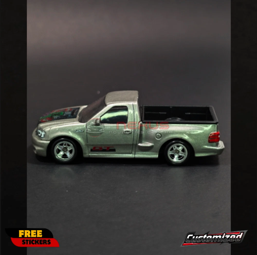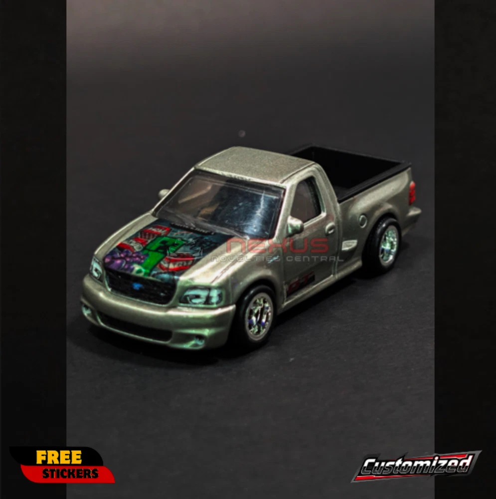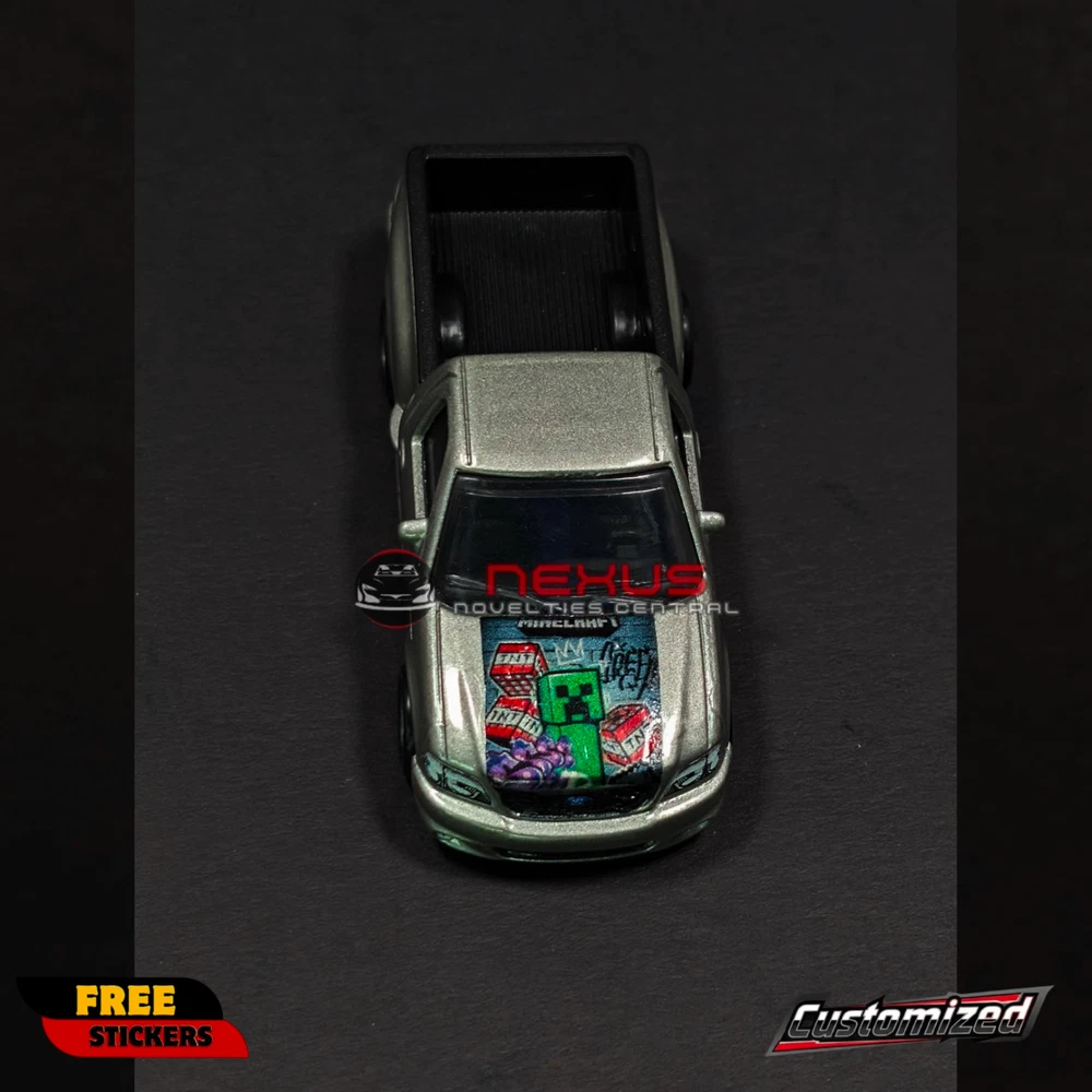 Hot Wheels Hyper Haulers Ford F-150 SVT Lightning with Custom Minecraft Design! Condition: Loose (removed from packaging), customized. Features: 1:64 Scale: Perfect size for your collection or display. Hyper Haulers Series: From Hot Wheels. '99 Ford F-150 SVT Lightning: This diecast is based on the high-performance Ford truck. Custom Tampos: Features "GT" on the doors and design on the hood. Painted Tailgate Opener: Adds a realistic touch to this custom truck. Important Notes: Customized: This car has been modified with custom decals for a unique appearance. Freebies: Free random vehicle sticker! Original carded photos: You'll receive photos of the car in its original packaging via preferred email! Why You Need This: Unique Design: The Minecraft-inspired theme sets this F-150 SVT Lightning apart. Eye-Catching Details: The custom tampos and painted tailgate opener add a realistic touch. Perfect for Display: Ideal for collectors who appreciate custom diecast cars and fans of Minecraft. Add this custom Ford F-150 SVT Lightning to your collection today! Important Notes: Combined shipping available. All sales are final. No returns or refunds. Item will be carefully packed to ensure it arrives in pristine condition.