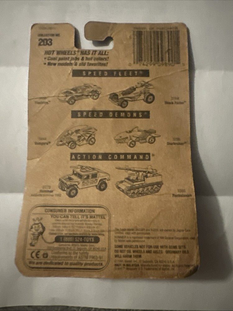 Hot Wheels Jaguar Xj220 Collector #203 Lwgd MINT on 1991 Card 13579 Dark Blue