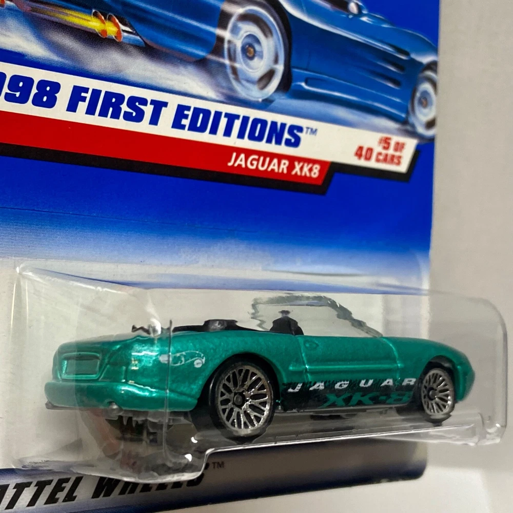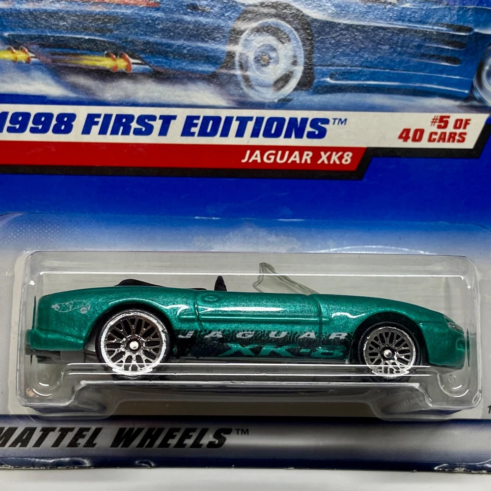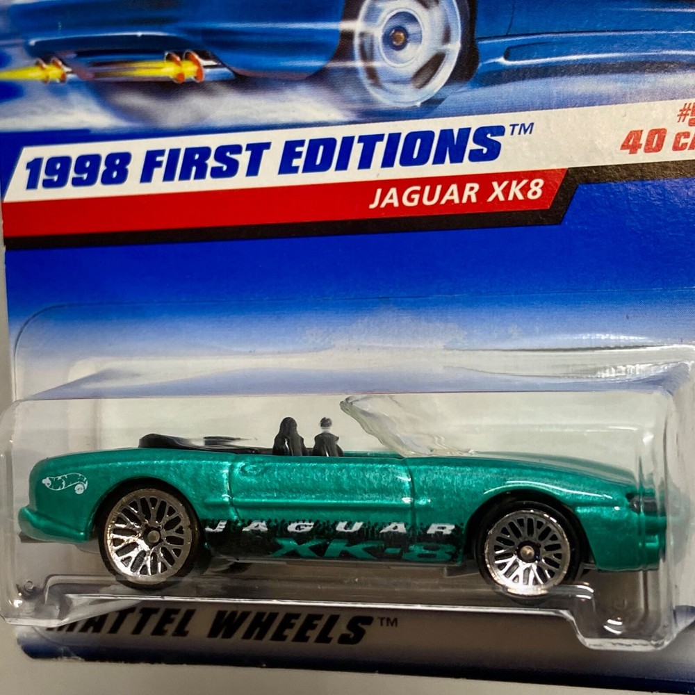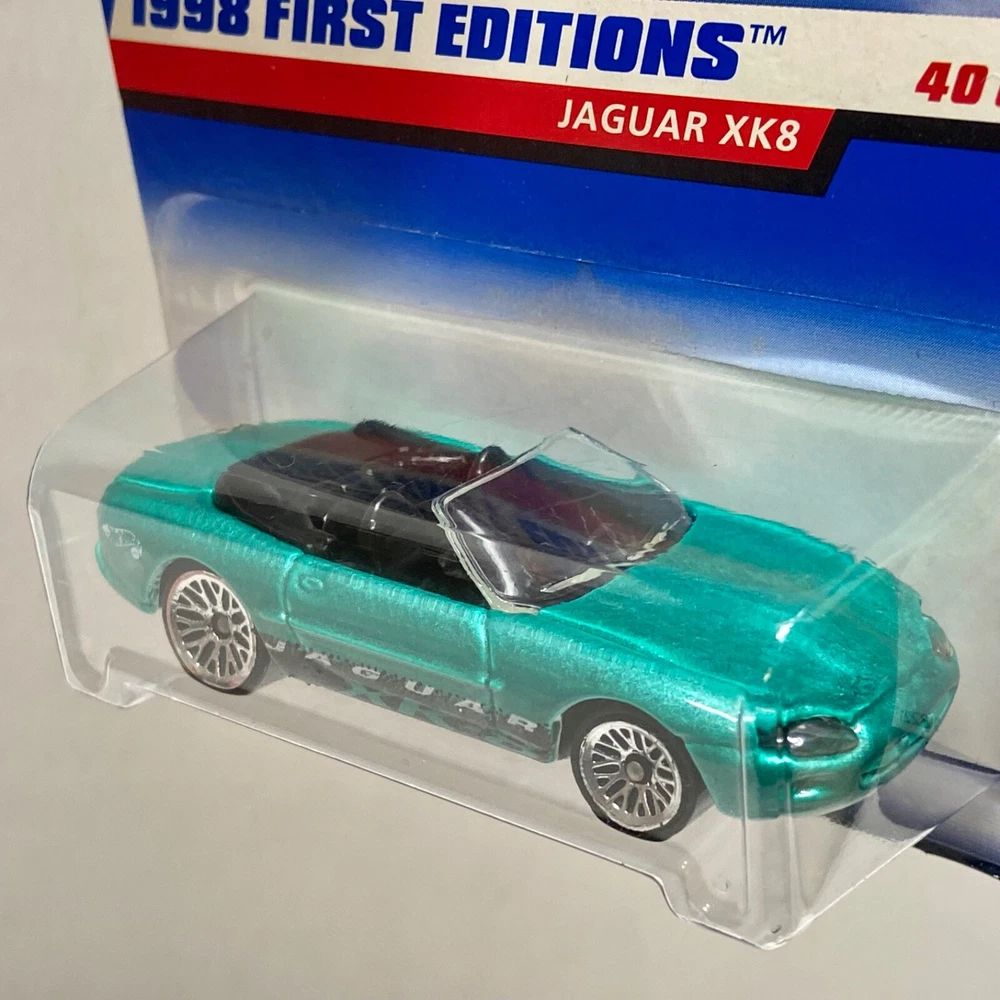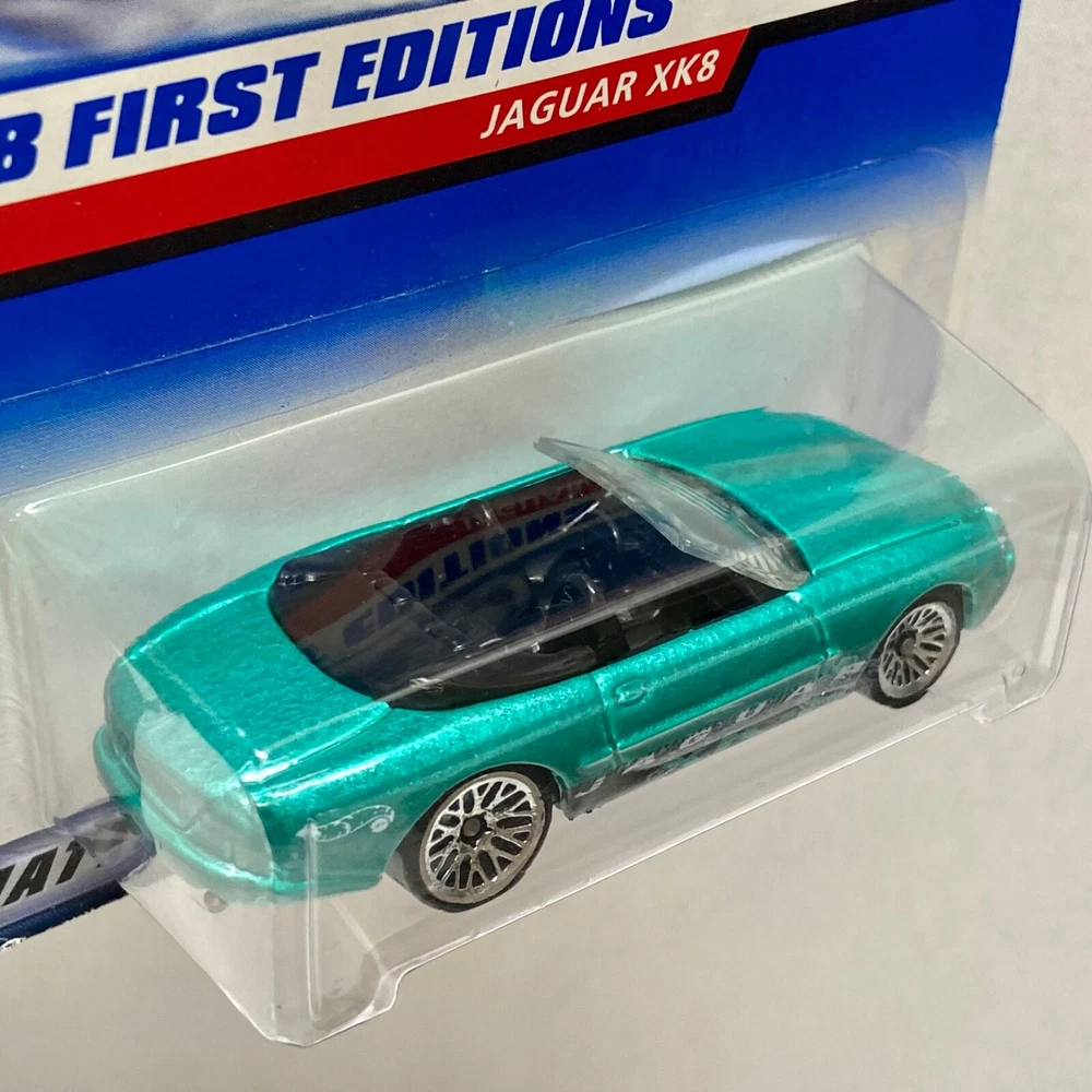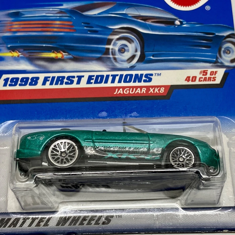 This is a Hot Wheels Jaguar XK8 die-cast collector car from the 1998 First Editions series. It is a 1:64 scale model of a green 1997-98 Jaguar XK8. The car is a limited edition special edition release, still in its unopened box. It is part of the HW character family and is recommended for ages 3 and up. All die-cast vehicles are securely packed in a box and ships same day payment is received. Thank you for shopping TKO Specialties