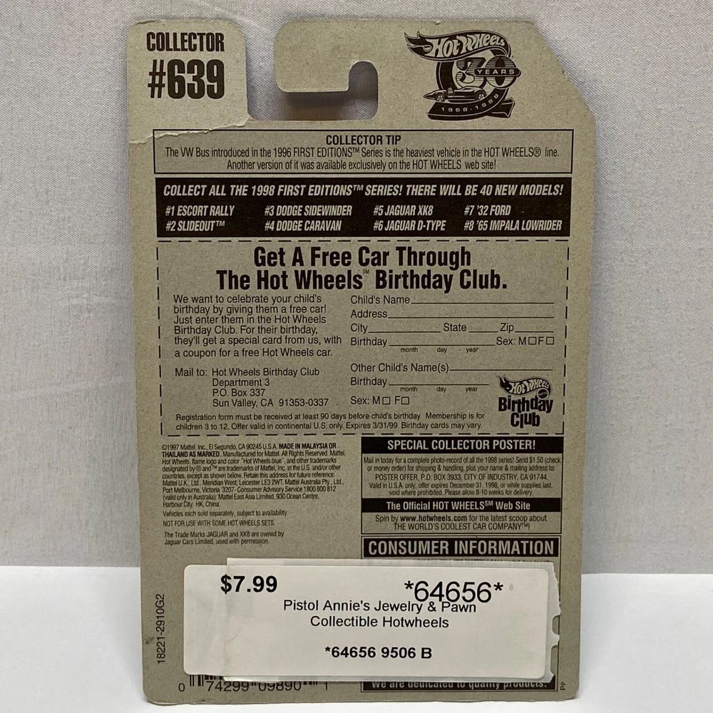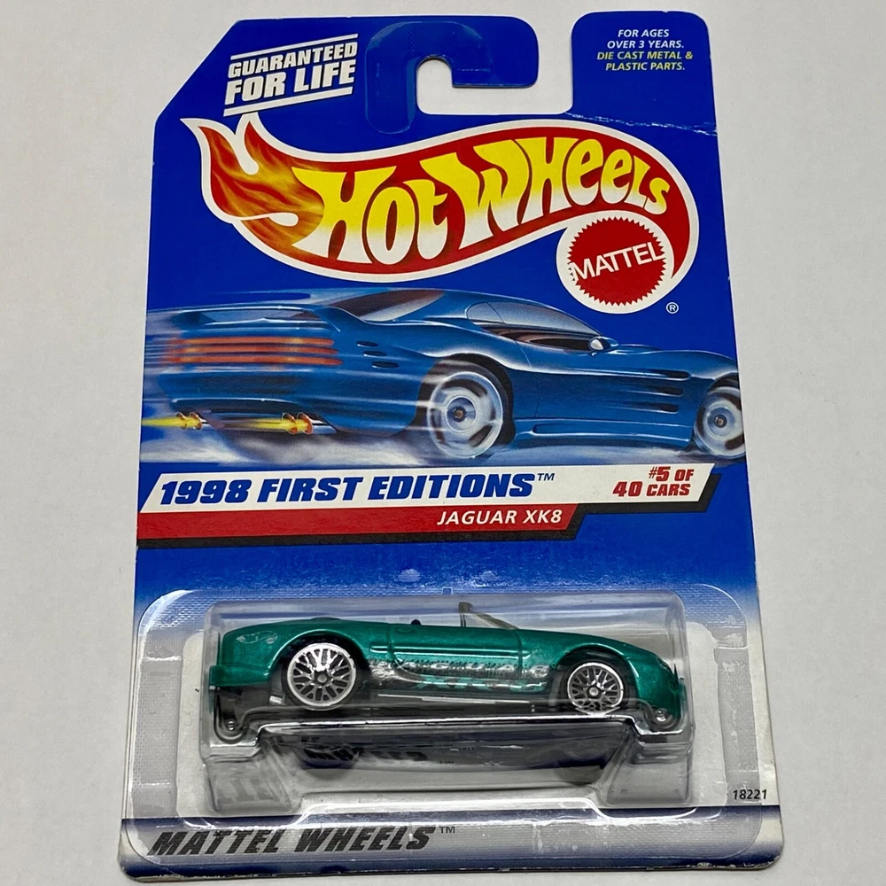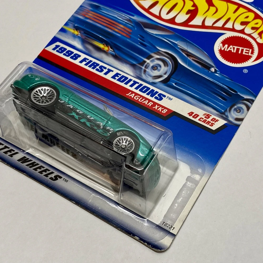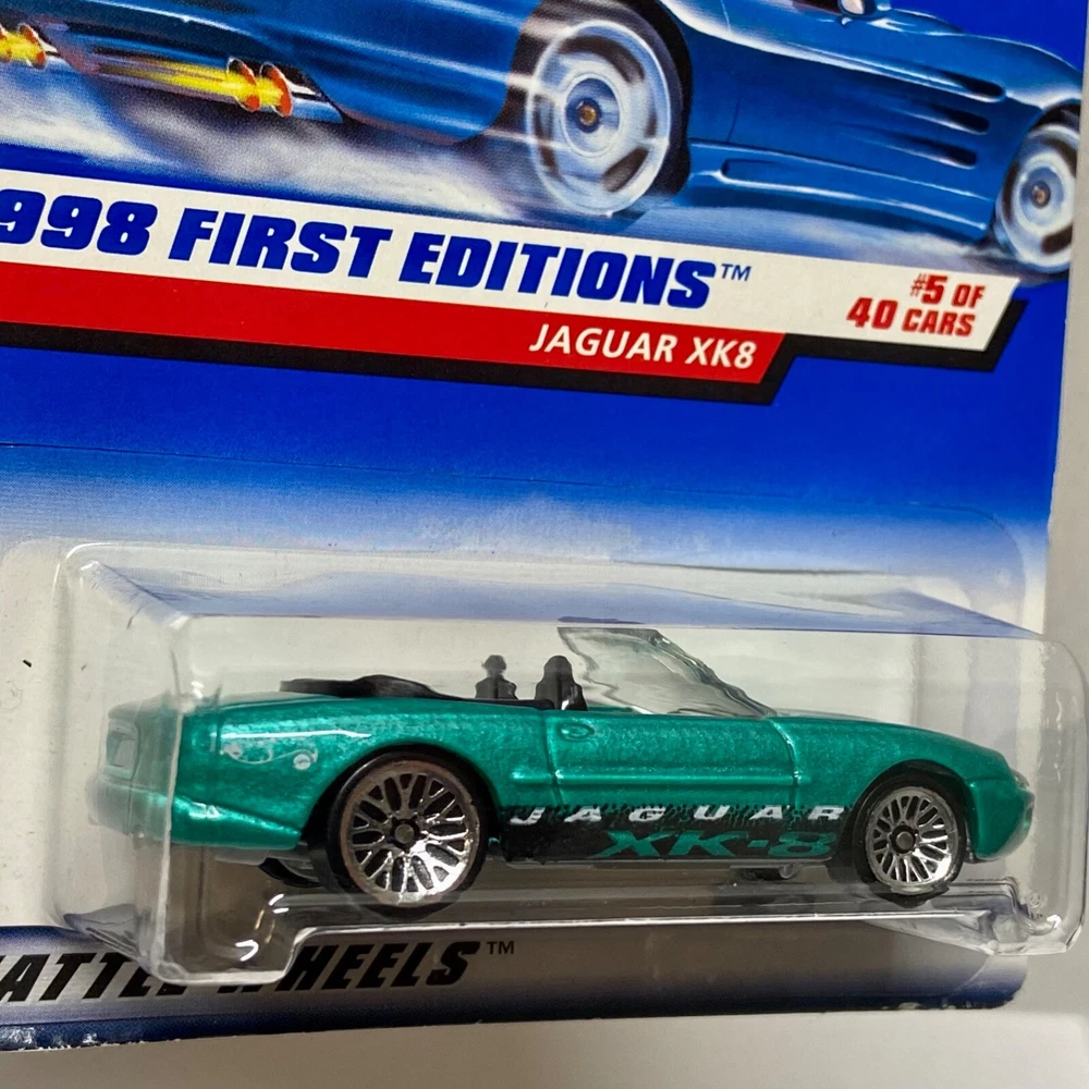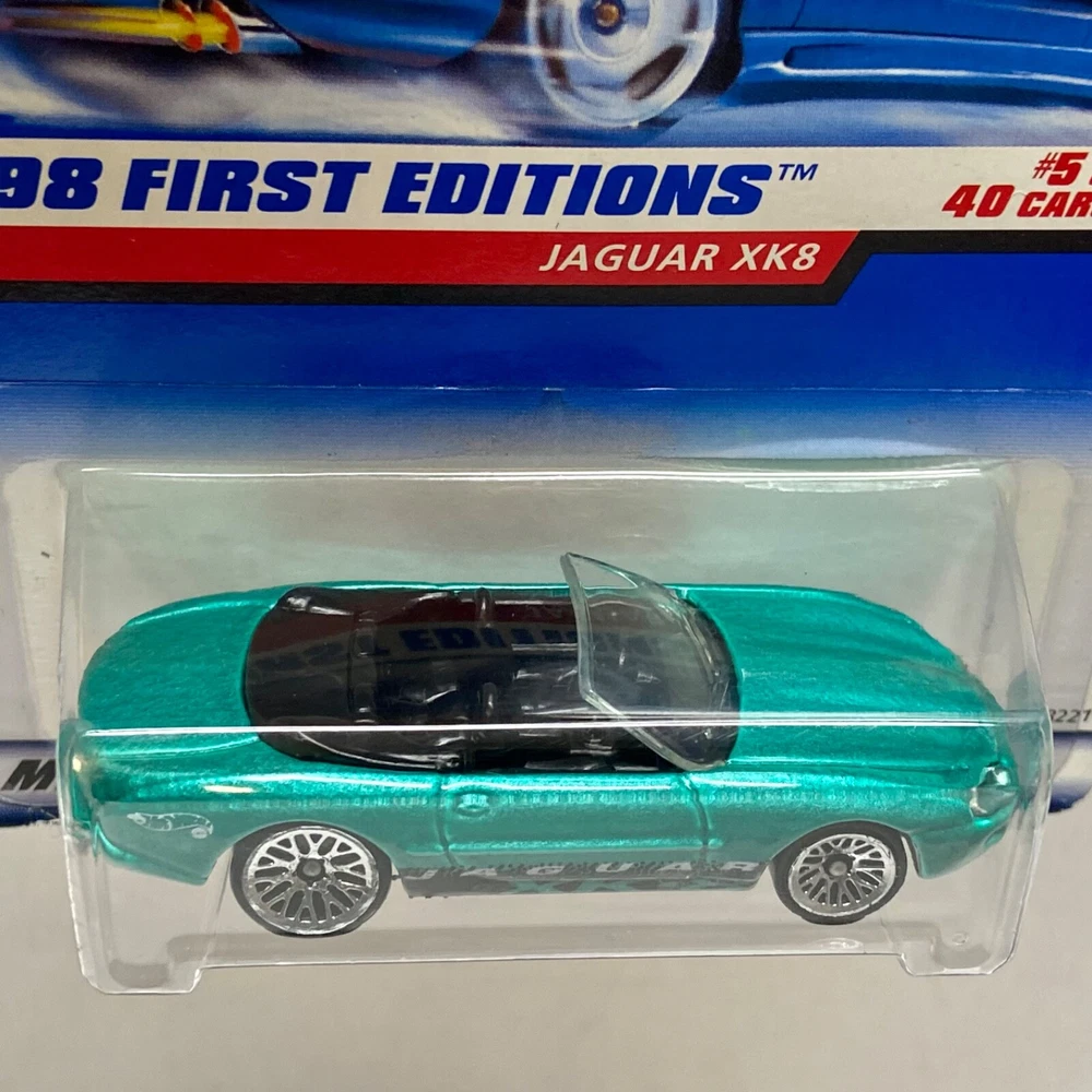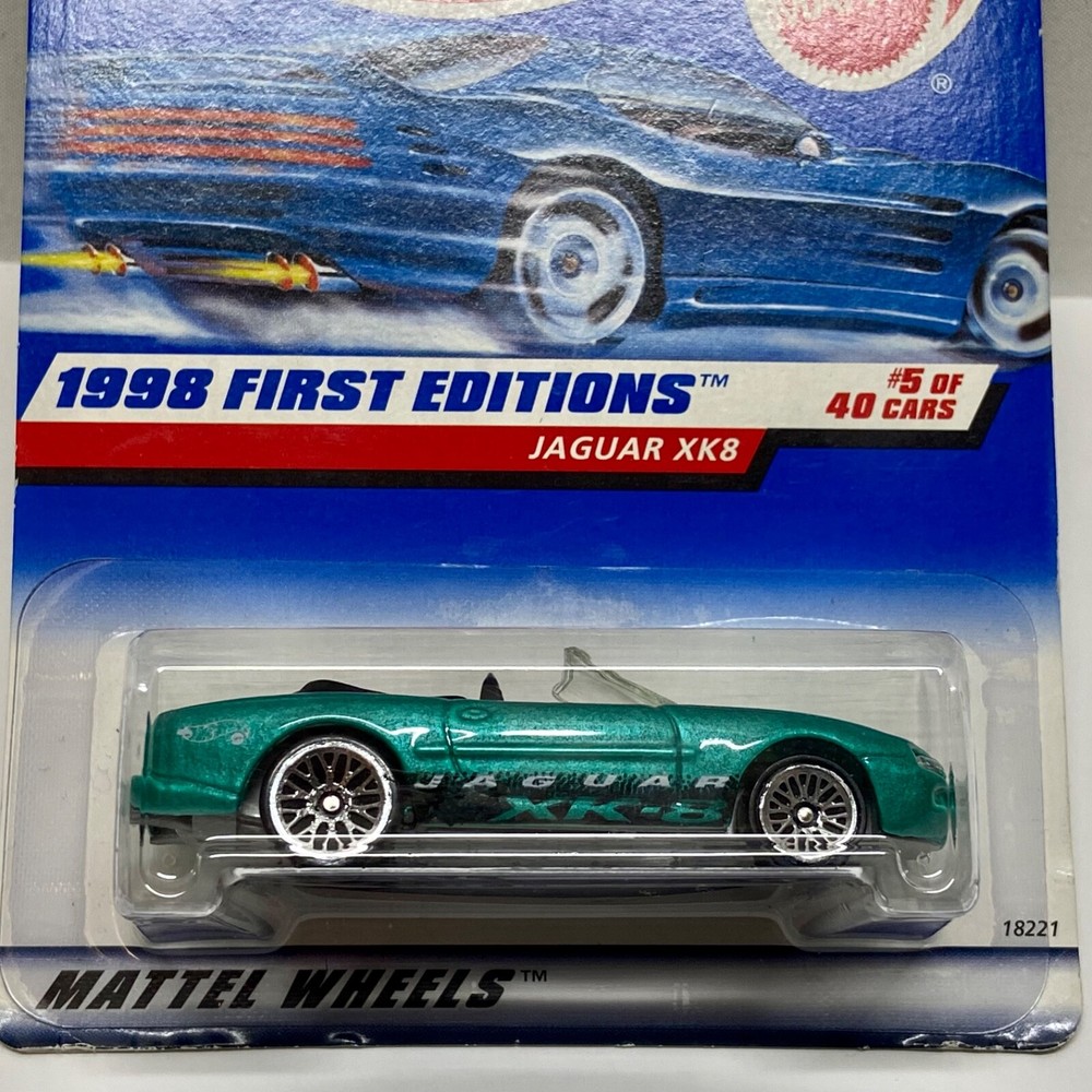 This is a Hot Wheels Jaguar XK8 die-cast collector car from the 1998 First Editions series. It is a 1:64 scale model of a green 1997-98 Jaguar XK8. The car is a limited edition special edition release, still in its unopened box. It is part of the HW character family and is recommended for ages 3 and up. All die-cast vehicles are securely packed in a box and ships same day payment is received. Thank you for shopping TKO Specialties