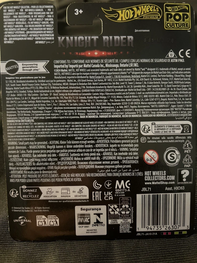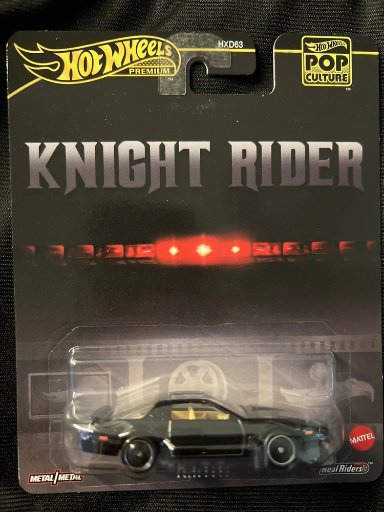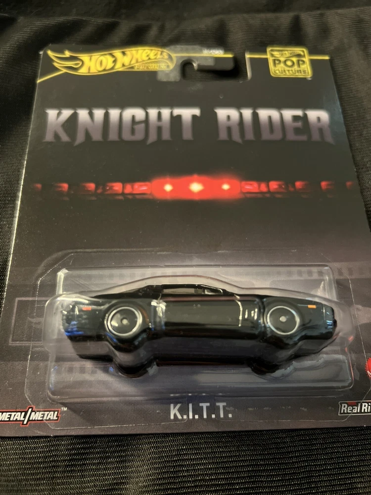 The Hot Wheels K.I.T.T. Black is a diecast car model from the Pop Culture: Knight Rider series. This 1:64 scale replica of the iconic vehicle from Knight Rider features a sleek black color scheme and is modeled after the famous car known as K.I.T.T. The toy comes in an unopened box, making it a collectible item for fans of the show and Hot Wheels enthusiasts alike. Released in 2025, this Hot Wheels model embodies the theme and nostalgia of the classic Knight Rider TV series.