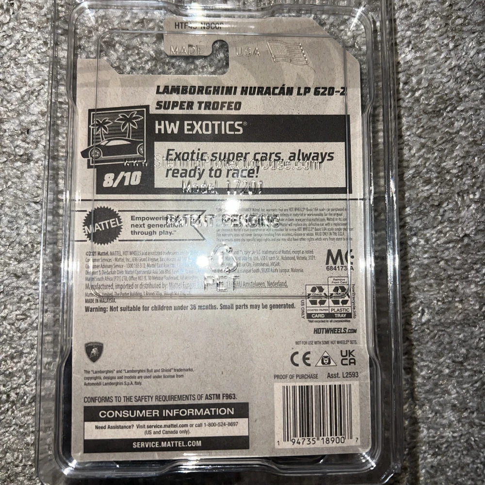 The Hot Wheels Lamborghini Huracan LP 620-2 Super Trofeo is a 1:64 scale diecast car with protective case featuring a multi-color design. Released in 2024, this limited edition model is part of the Super Treasure Hunt series and comes in an unopened box. Ideal for collectors and enthusiasts, this Lamborghini Huracan replica appeals to individuals of various age levels and genders who appreciate detailed and high-quality diecast toy vehicles. Perfect for fans of cars and the Lamborghini brand, this Hot Wheels model offers a unique and sought-after addition to any collection.