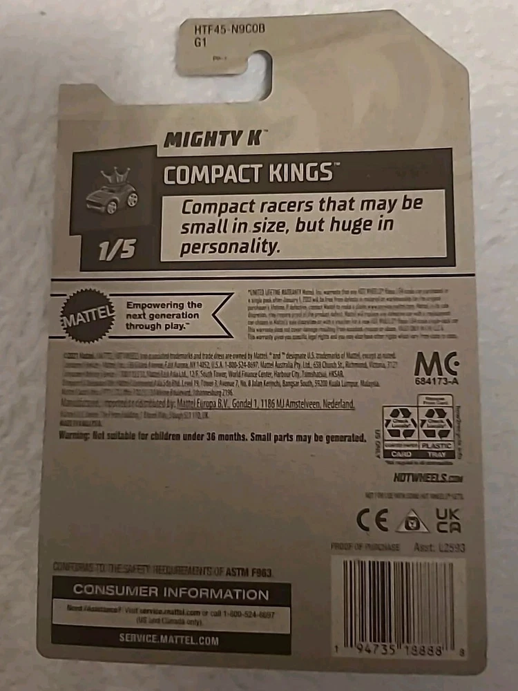 Year of Manufacture:2024Age Level:17 Years & Up, 12-16 Years, 8-11 Years, 4-7, 3-4 YearsMaterial:DiecastColor:SilverVehicle Year:2024Customized:NoGender:Boys & Girlsgtin13:Does not applySeries:Hot Wheels ZamacVehicle Type:CarRecommended Age Range:3+Country/Region of Manufacture:MalaysiaAutographed:NoModel:mighty kBrand:Hot WheelsTheme:hot wheels compact kingsUPC:Does not applyScale:1:64Character Family:CarsFeatures:Unopened Box, Special Edition, Limited EditionVehicle Make:Hot Wheels