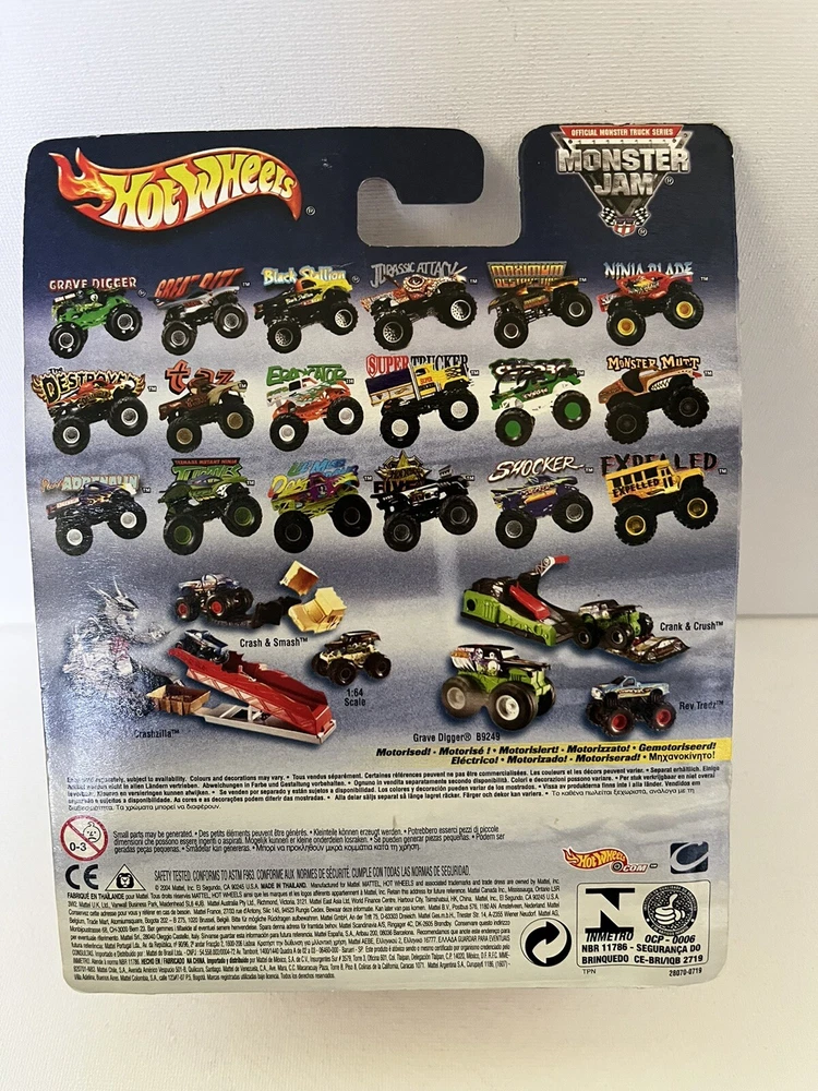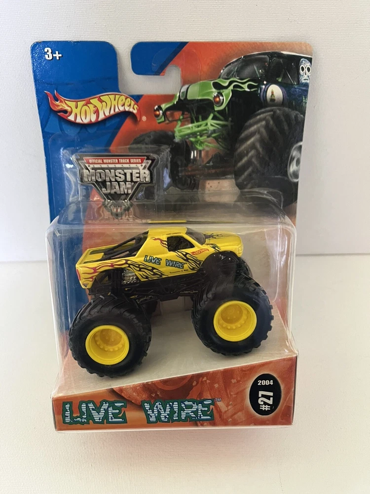 For sale is a Hot Wheels Monster Jam 2004 Live Wire #27 1:64 scale diecast monster truck, in new, unopened condition. The card and plastic have a little wear. It has been stored in a Rubbermaid container in a smoke free home. If you have any questions regarding this item, please ask! If you have any problems after receiving this item, please contact me and I'll make it right!