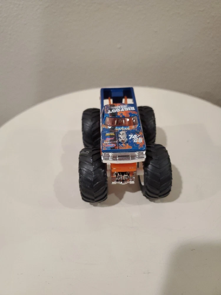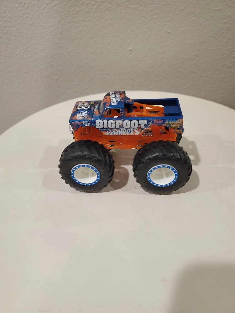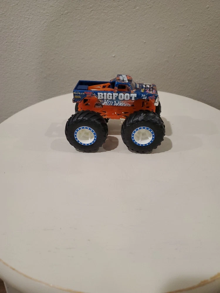 This is a Hot Wheels Monster Jam 1:64 scale diecast Monster Truck model of Bigfoot from 2017. It is in blue color with a Batman theme and features an Advertising Specimen and Chase design. The truck is part of the Hot Wheels Monster Jam series and is recommended for ages 5 and up. It is branded by Hot Wheels and is not autographed.