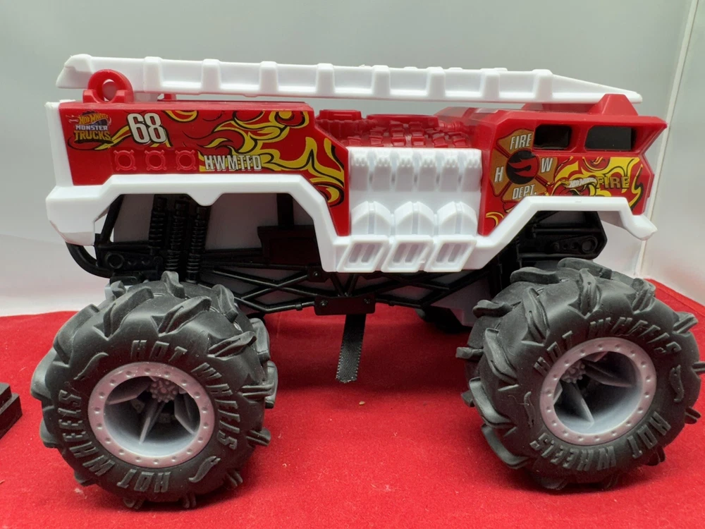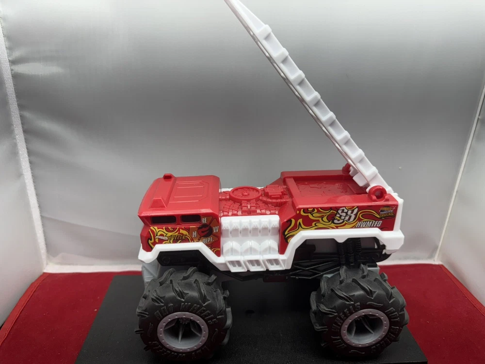 The Hot Wheels Monster Trucks 5 Alarm Fire Truck is a die-cast fire engine modeled after a real-life fire vehicle. It is part of the Hot Wheels Monster Trucks series, featuring a red 5 Alarm Fire Truck in a 1:64 scale. This collectible toy vehicle is designed by Hot Wheels and manufactured in Thailand for enthusiasts and collectors of die-cast and toy vehicles.