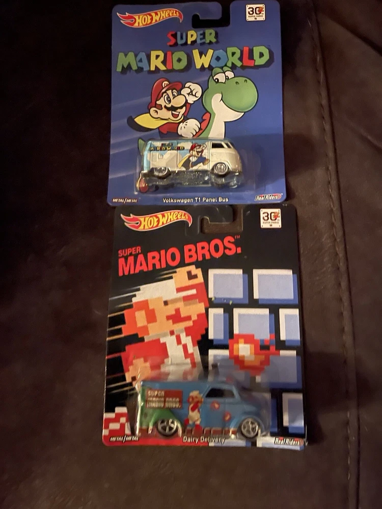 Features:Real Rider Tires, Metal Base / Metal BodyCustomized:NoYear of Manufacture:2015Material:DiecastVehicle Year:VariesSeries:Hot Wheels Pop CultureTheme:Mario Bros.Scale:1:64Recommended Age Range:3+Character Family:Super Mario Bros.Autographed:NoBrand:Hot WheelsModel:Volkswagen T1 Panel BusVehicle Make:Dairy DeliveryGender:Boys & GirlsVehicle Type:CarAge Level:3-4 Years, 4-7, 8-11 Years, 12-16 Years, 17 Years & UpColor:Cool-One 8 Crate Delivery A-OK School Busted