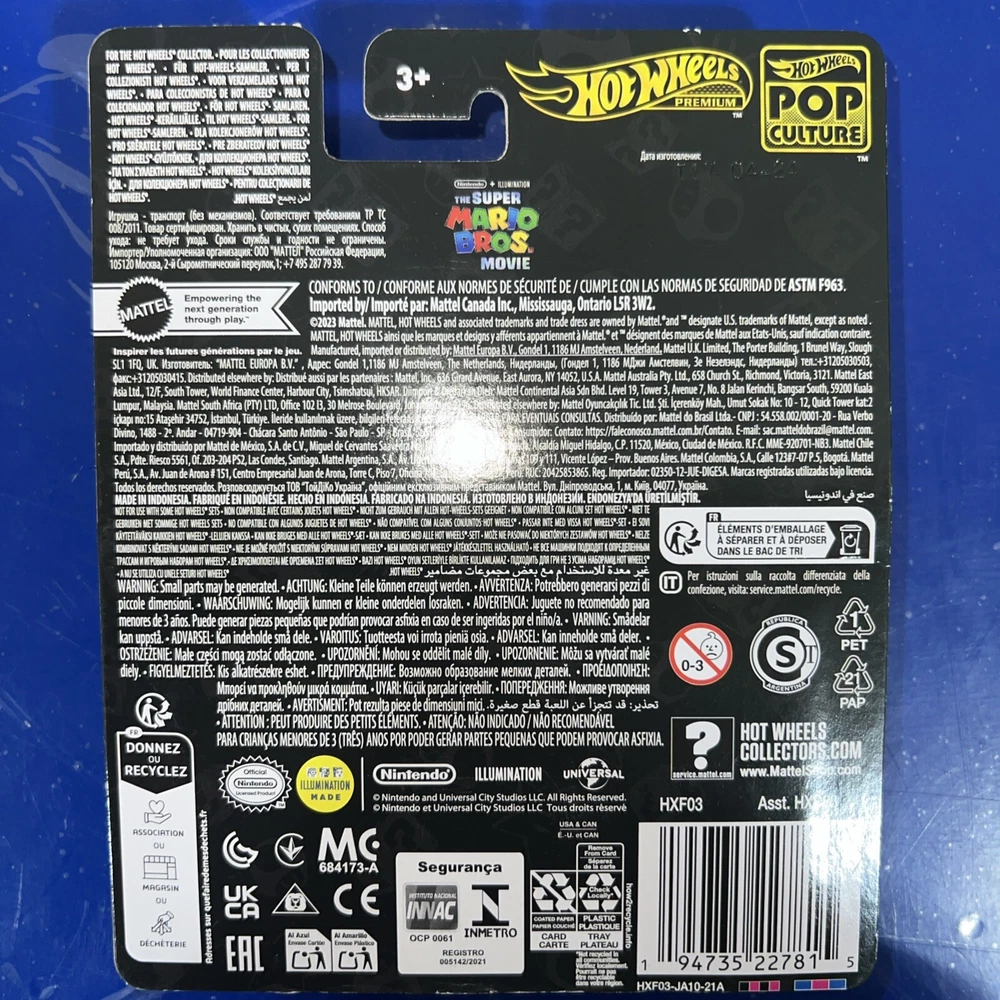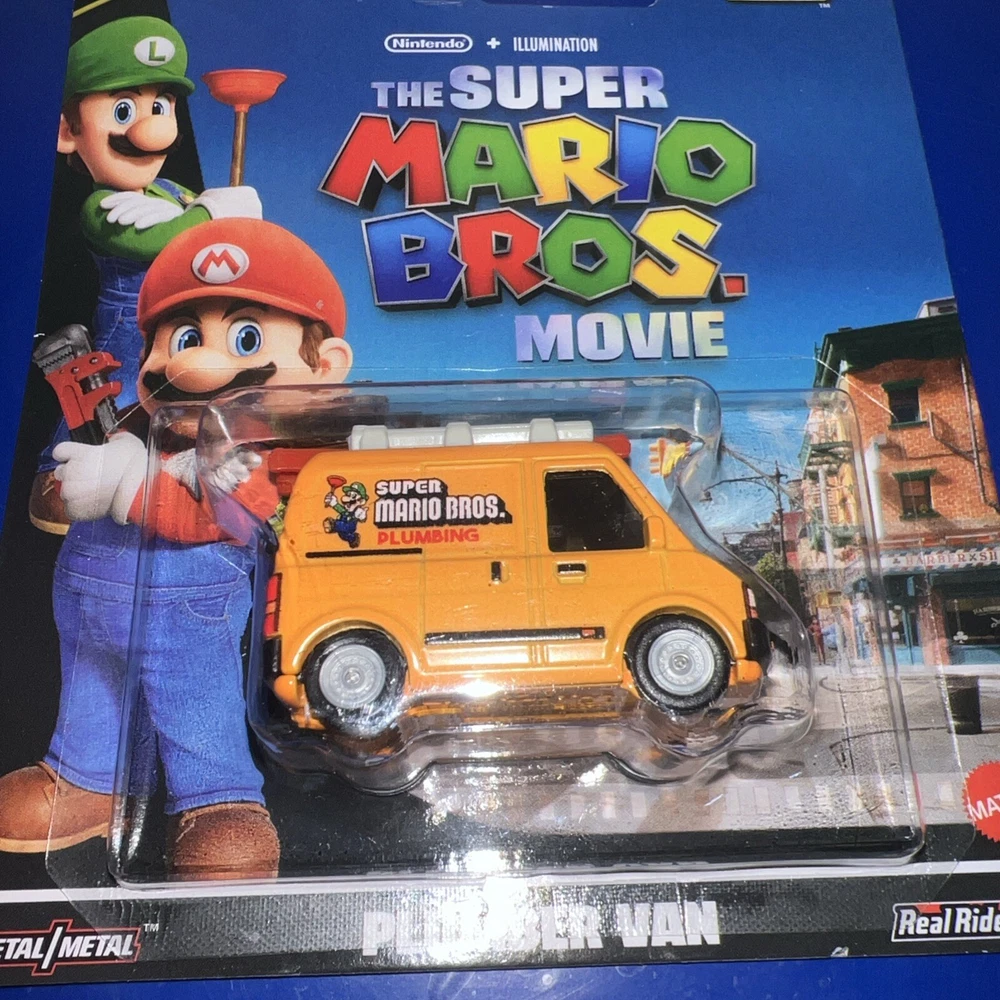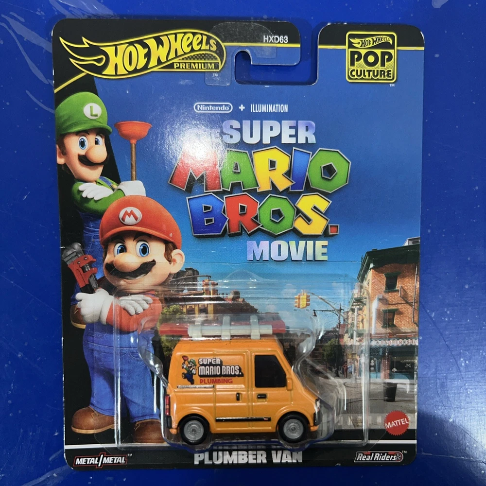 The Hot Wheels Premium 2024 HW Pop Culture The Super Mario Bros. Movie Plumber Van is a 1:64 scale diecast van featuring a custom design inspired by the popular video game franchise. This yellow van is part of the Hot Wheels Pop Culture series and is based on the character of a plumber from the Super Mario Bros. movie. With its unopened box, this collectible toy is suitable for boys and girls aged 3 and above, making it a unique addition to any Hot Wheels or Mario Bros. fan's collection.