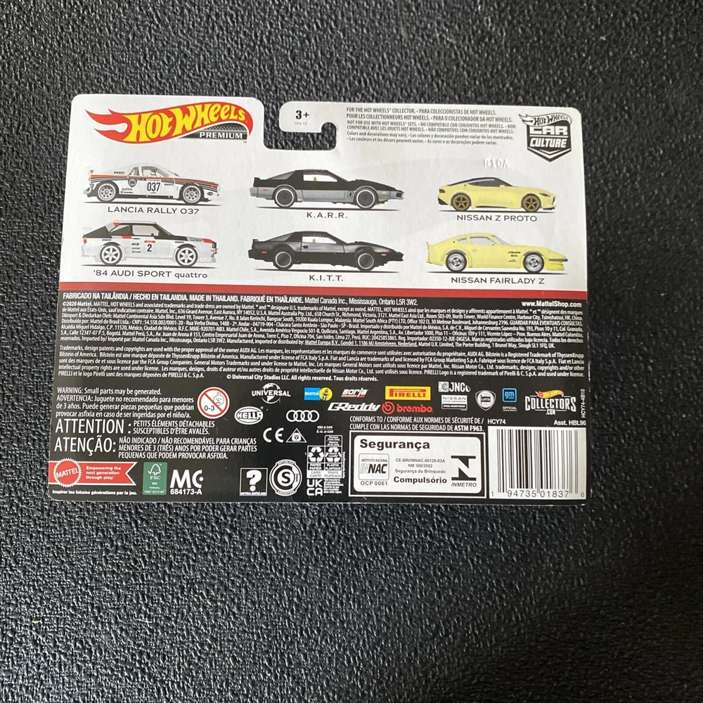 The Hot Wheels Premium Car Culture 2020 Knight Rider K.I.T.T. & K.A.R.R. 2-Pack NIP features two 1:64 scale diecast cars from the Hot Wheels Car Culture series. The set includes the Pontiac Firebird Trans Am models of K.I.T.T. and K.A.R.R. from the popular television show Knight Rider. Both cars come in black color with details inspired by the iconic series, making it a must-have collectible for fans of Knight Rider and Hot Wheels enthusiasts alike. Possible minor wear from storage on box. Packaging may not be perfect please look at the pictures for condition.