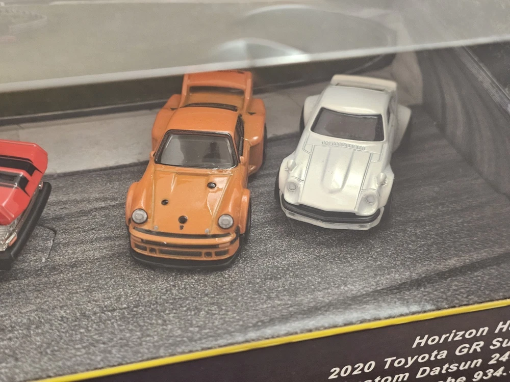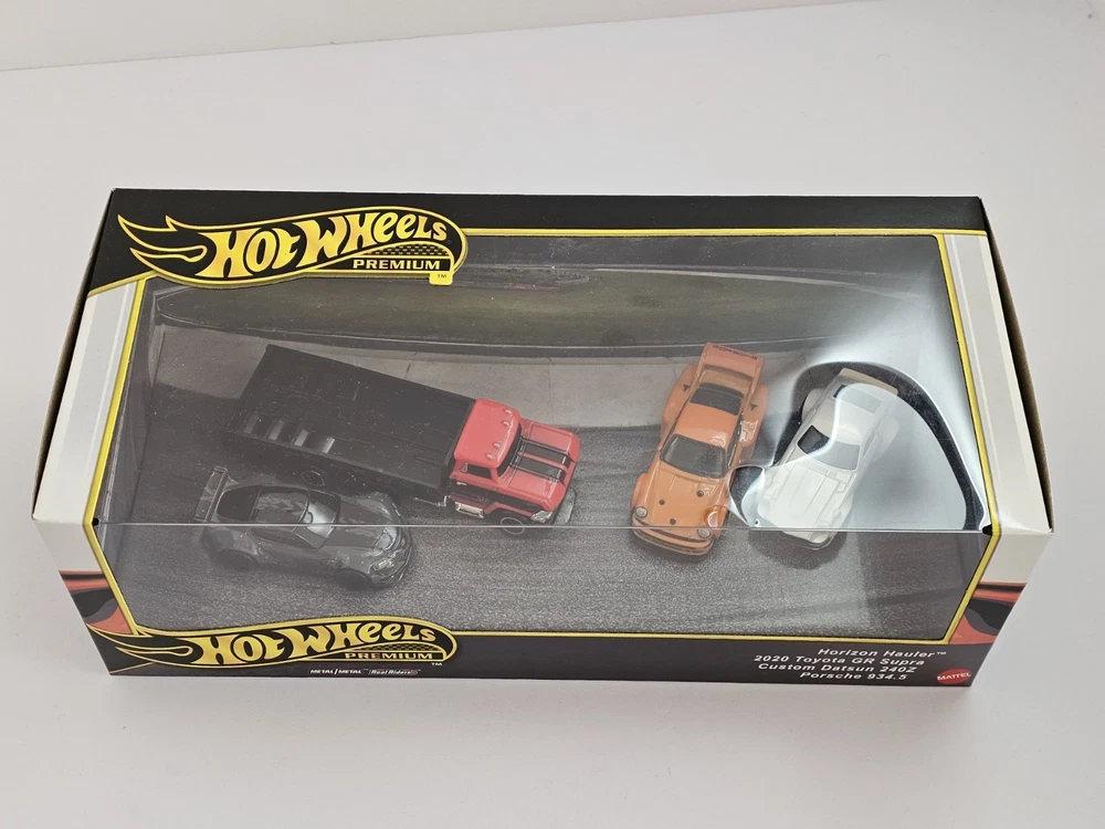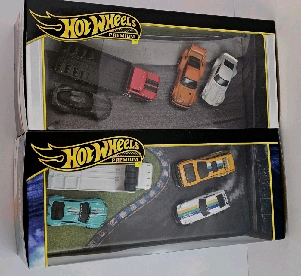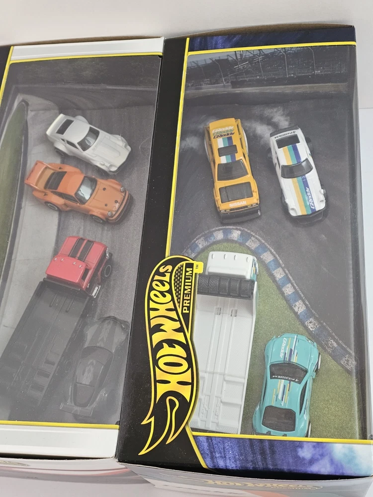 The Hot Wheels Premium Lot Of 2 Diorama includes various iconic car models such as Datsun, Nissan, Subaru, Toyota, Porsche, and more, all in 1:64 scale diecast material. This set is part of the Hot Wheels Premium series, perfect for boys and girls aged 3 and up. Each car comes in a multi-color design and is part of the 2024 release, making it a desirable addition to any diecast car collection. These cars are still in their unopened boxes, adding to their appeal for collectors and enthusiasts alike.