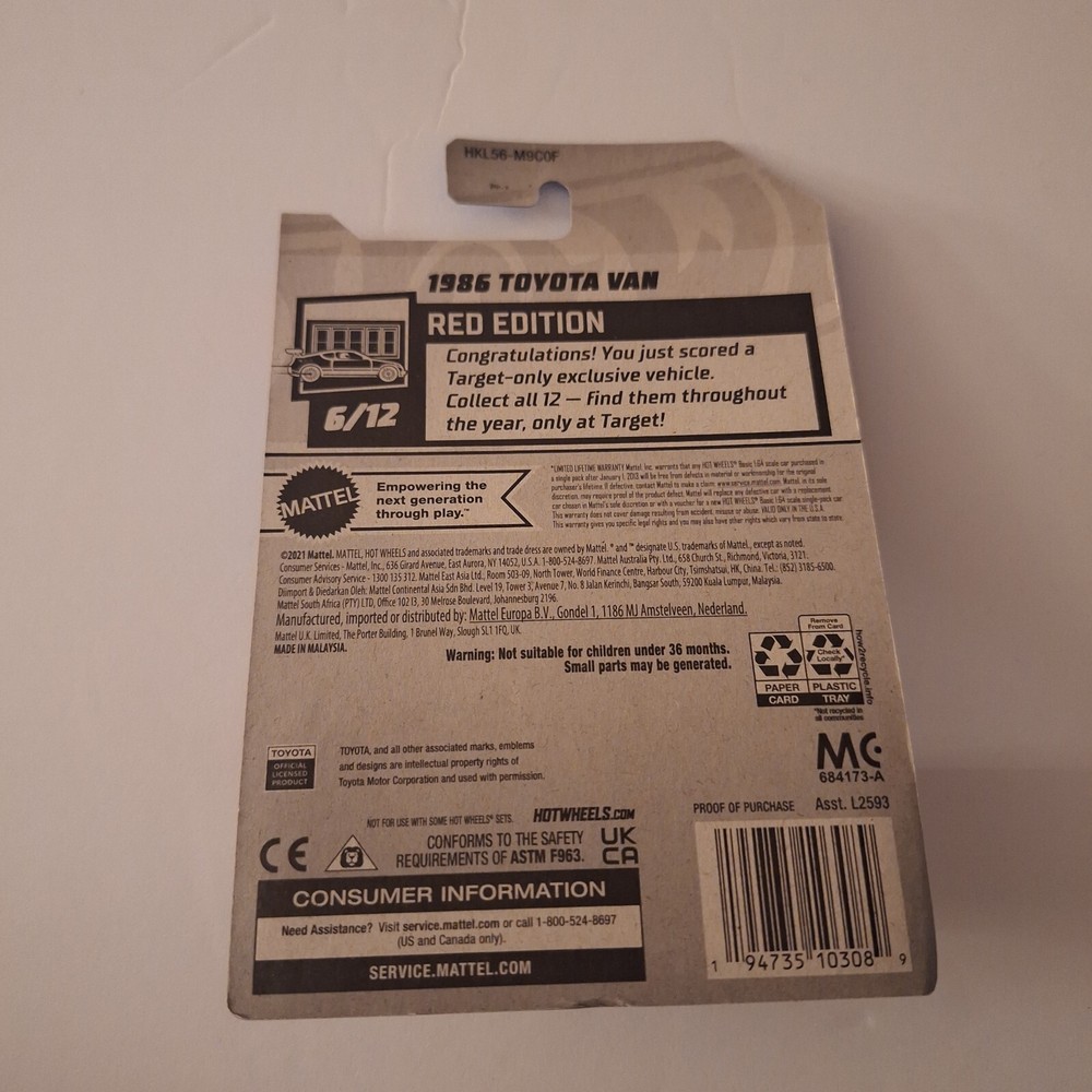 This Hot Wheels Red Edition 1986 Toyota Van Target Exclusive is a must-have for any toy vehicle collector. With its vibrant red color and 1:64 scale, this van is sure to stand out on any display shelf. The van is part of the Hot Wheels Red Edition series and is a 2021 manufacture. The vehicle is suitable for children aged 3-4 years and is perfect for both boys and girls. The toy is made by the well-known brand Hot Wheels and features a Toyota van model from 1986. This item is a great addition to any toy vehicle collection and is sure to be a hit with fans of Hot Wheels.