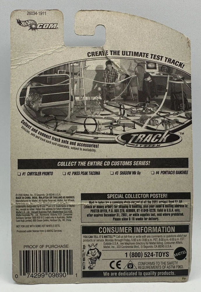 This Hot Wheels die-cast car is a collector's dream. With a white Shadow vehicle make and a 1:64 scale, this car is a perfect addition to any collection. The car is unopened and comes in its original box, making it a great gift for boys and girls alike. Manufactured in Malaysia in the year 2000, this Hot Wheels car is a part of the Hot Wheels First Editions series. It is recommended for children above the age of 3 and is suitable for both boys and girls. This car is not customized and is a great addition to any diecast car collection.